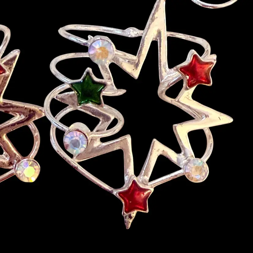Festive Holiday Silvertone French Wire Earrings 1.76”