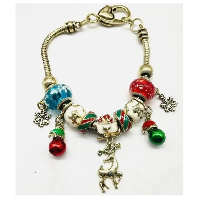 Celebrate the season with this charming bracelet featuring festive beads and reindeer charms. Perfect for adding a touch of holiday spirit to any outfit.