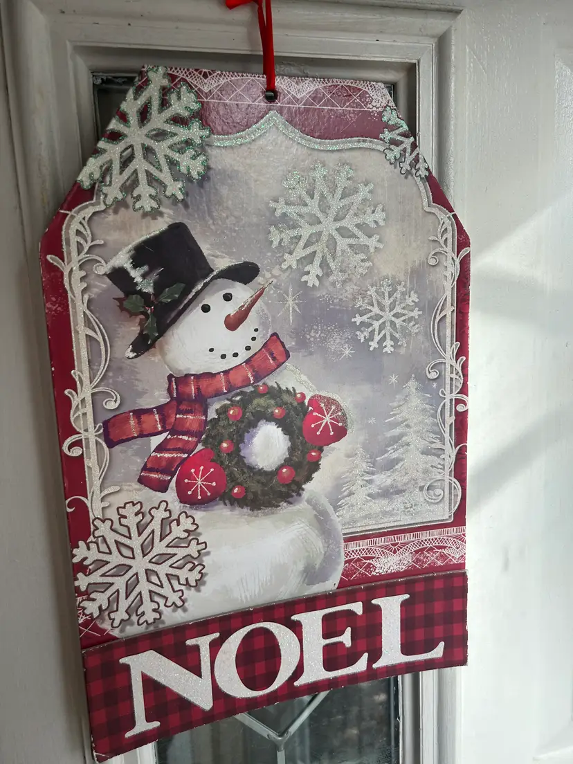 Charming snowman sign with 'Noel' text, perfect for adding a festive touch to your holiday decor.