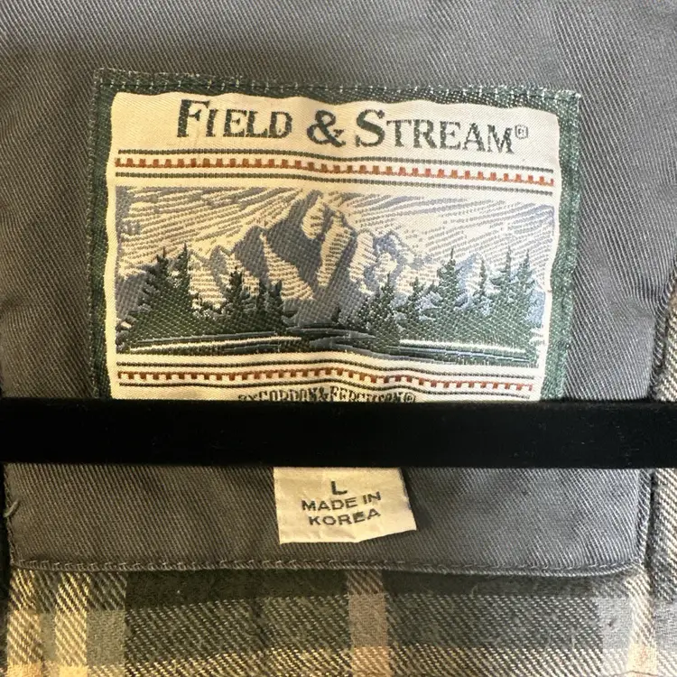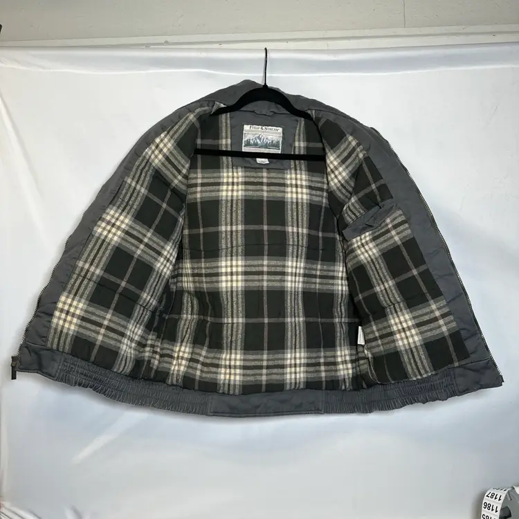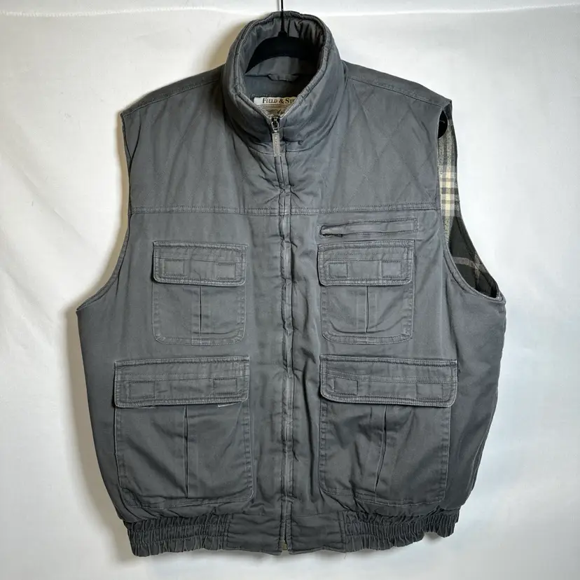 Field & Stream Men's LARGE HUNTING WINTER Full-Zip Vest in Gray Cotton Twill. This unisex vest is designed for hunting performance with a full zip front. Made of cotton twill, it is suitable for winter season wear. The size is Large and the outer shell material is a vest style.