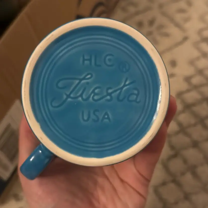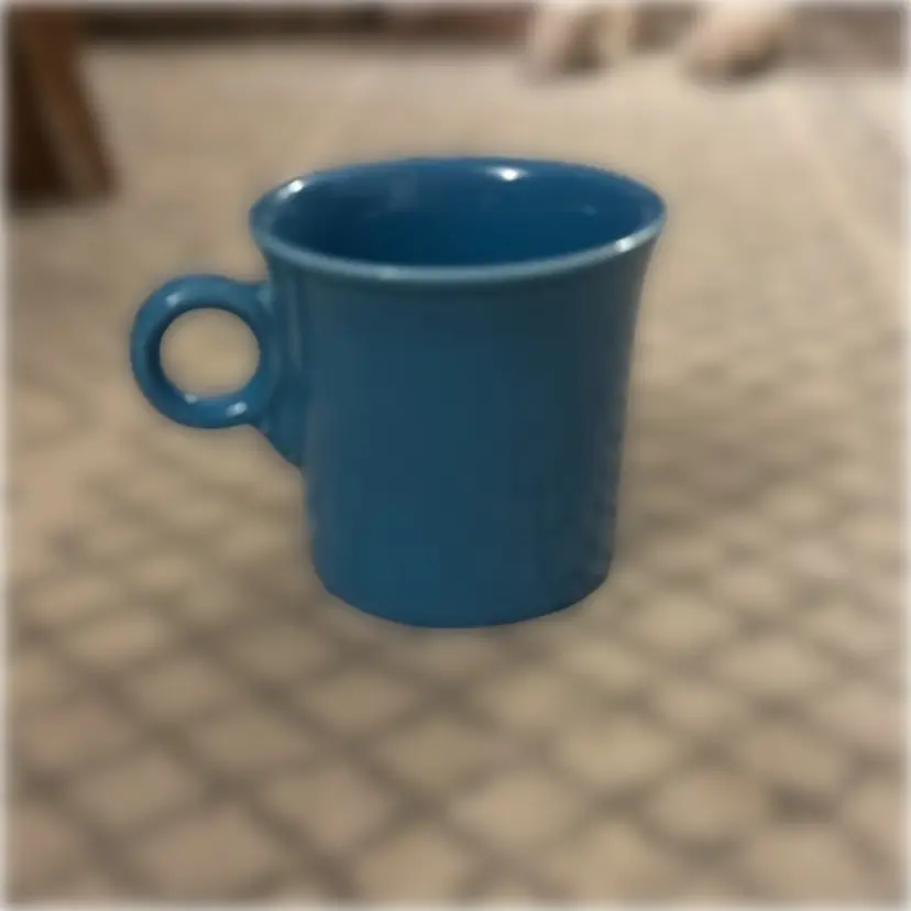 Fiesta Homer Laughlin Peacock Blue Coffee Mug. 3.5” tall and 3.5” in diameter.