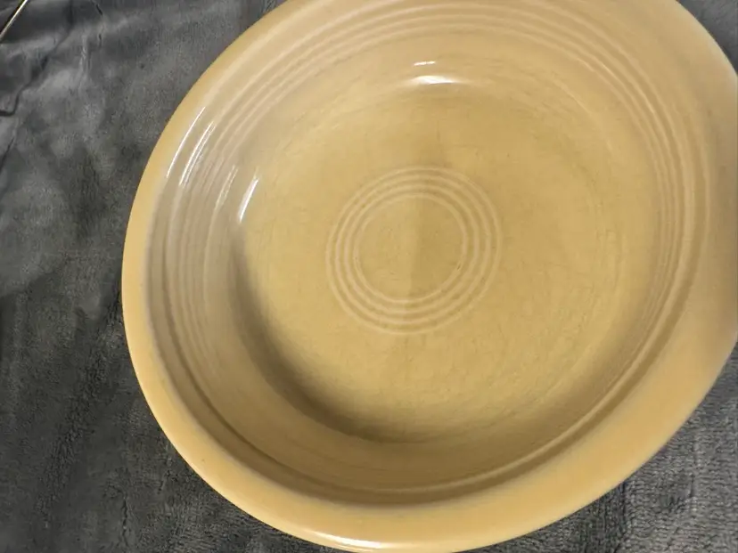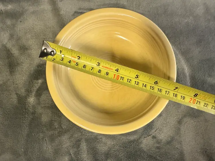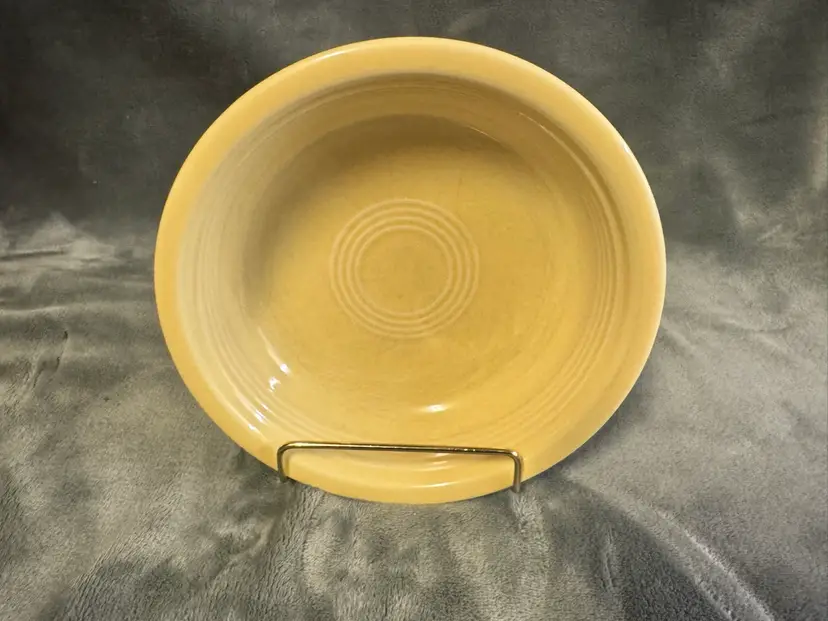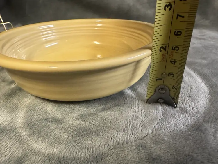 The Fiesta Fiestaware Large 7” X 2” Cereal Soup Bowl in Yellow Sunflower is a vintage cereal bowls made of ceramic. The bowls feature a glossy finish and are dishwasher safe for easy cleaning. Produced by Fiestaware in the United States, these bowls are part of the Fiesta product line and perfect for all occasions. With a yellow color and a 7” diameter, these bowls add a touch of retro charm to any table setting for adults. Fair condition. No chips, cracks, or crazing. Heavy utensil wear consistent with every day use. See photos.