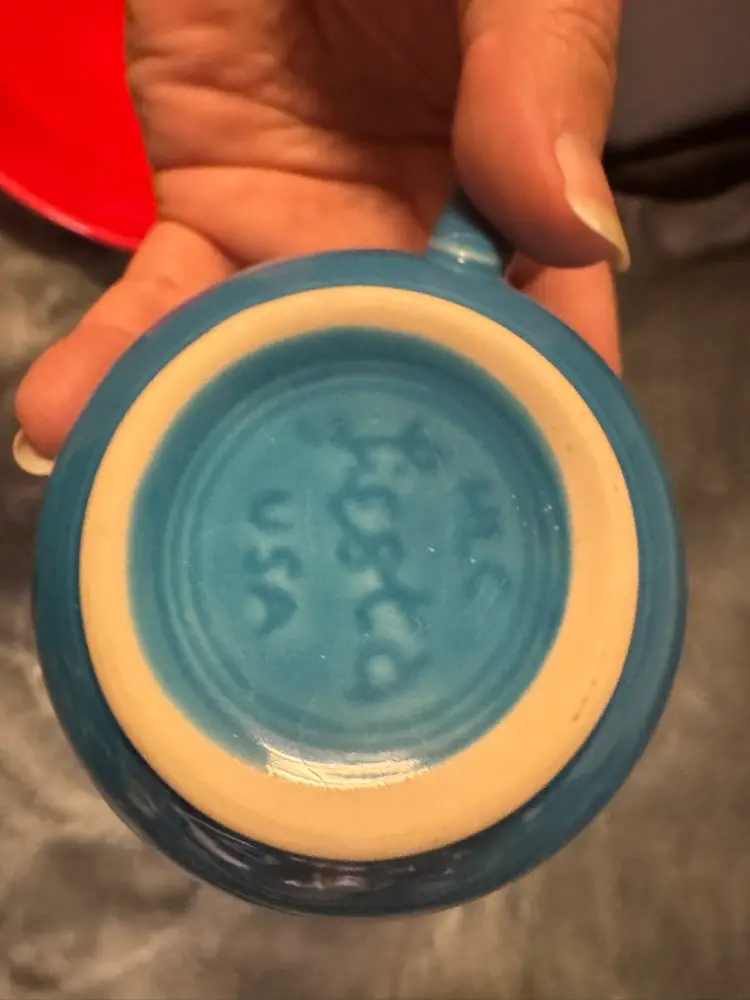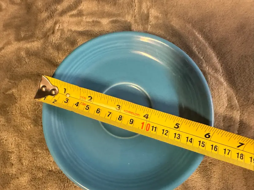 The Fiesta Fiestaware Peacock Blue Tea Cup & Saucer Set by Homer Laughlin is a stylish addition to any tea or coffee collection. Made of ceramic with a glossy finish, this two-piece set includes a round tea cup and saucer in a vibrant blue color. Perfect for American-themed gatherings, the Fiesta brand and production style of art pottery add a touch of charm to your table setting. With a diameter of 3.5" and a height of 2.75", this set is ideal for serving tea in style for both unisex adults. Excellent condition. Never used. No chips, cracks, crazing or scratches