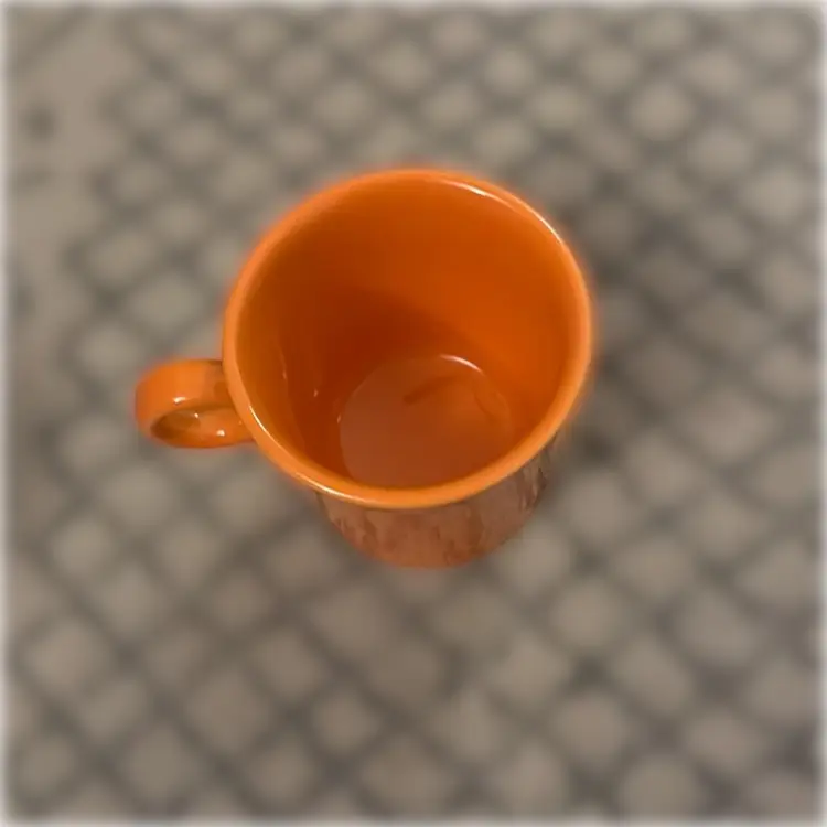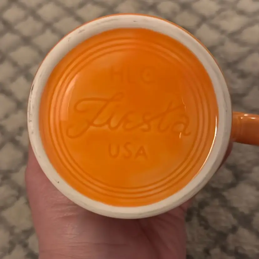 Fiesta Homer Laughlin Orange Tangerine Coffee Mug. 3.5” tall and 3.5” in diameter.