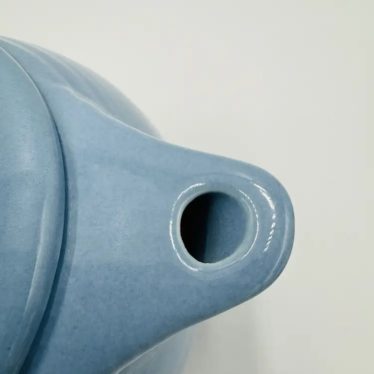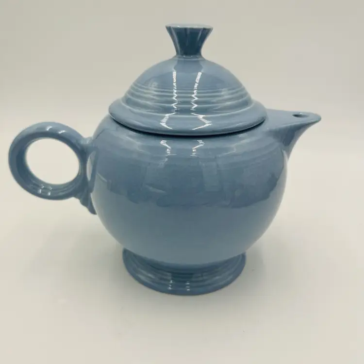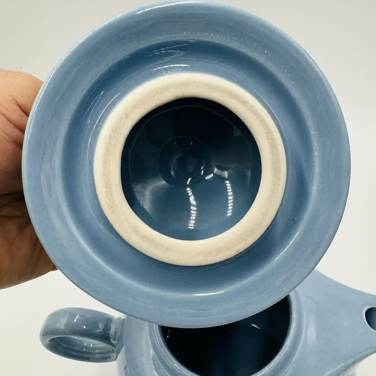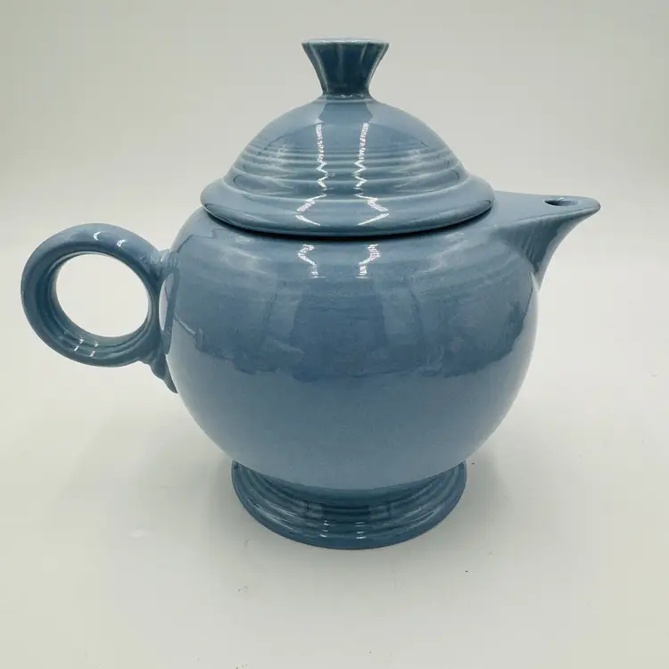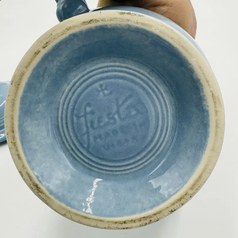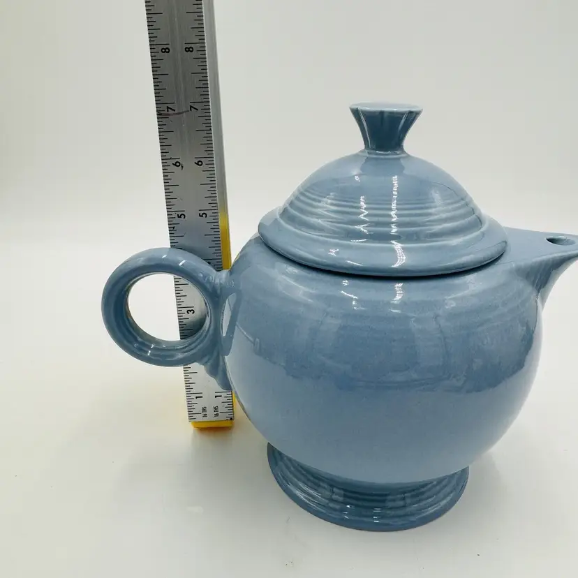 Features: Handles, Lid Included, Decorative Handmade: Yes Pattern: Solid Time Period Manufactured: 1980-1989 Production Technique: Pottery Item Height: 7 in Number of Items in Set: 1 Vintage: Yes Country/Region of Manufacture: United States Origin: California Material: Ceramic, Stoneware Year Manufactured: 1980 Product Line: Fiesta Shape: Round Packaging: Unboxed Finish: Glossy Production Style: Art Pottery Brand: Fiesta Style: Retro Antique: No Color: Blue Original/Licensed Reproduction: Original Backstamp: Incised Theme: American Capacity: 5 Cups Type: Tea Pot
