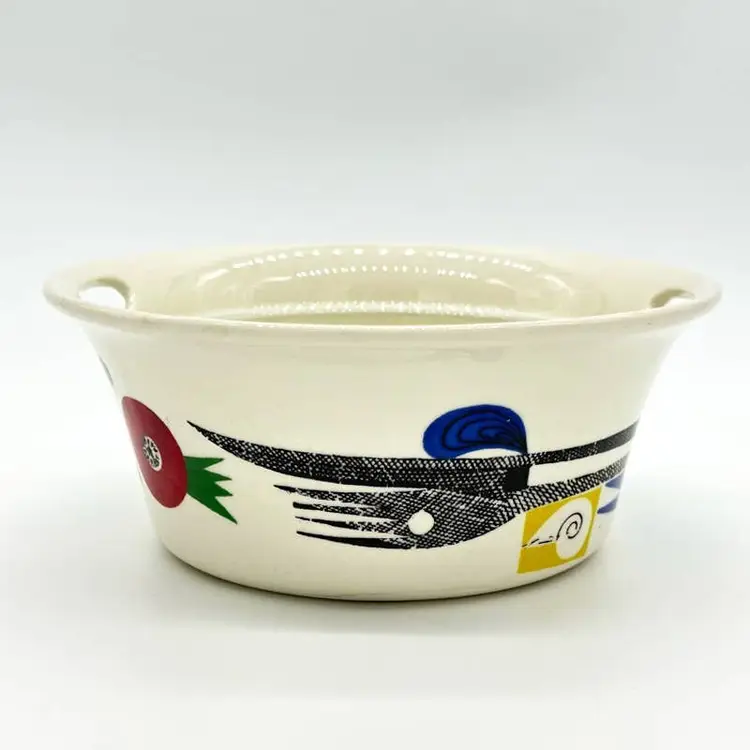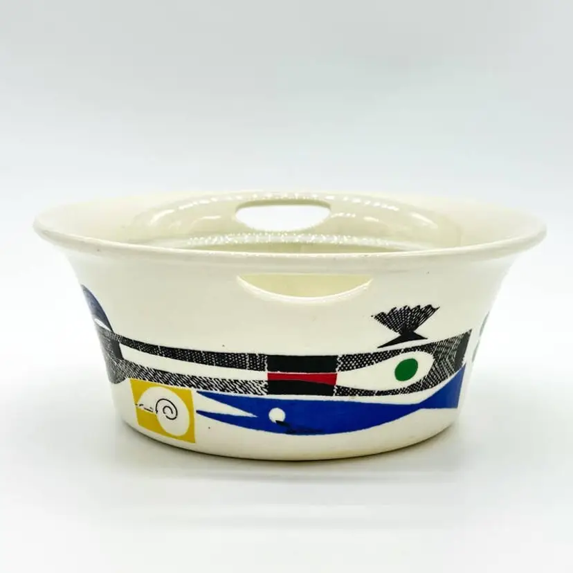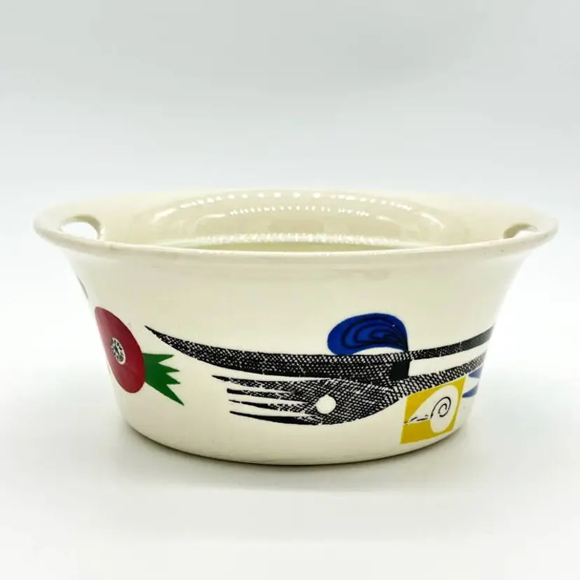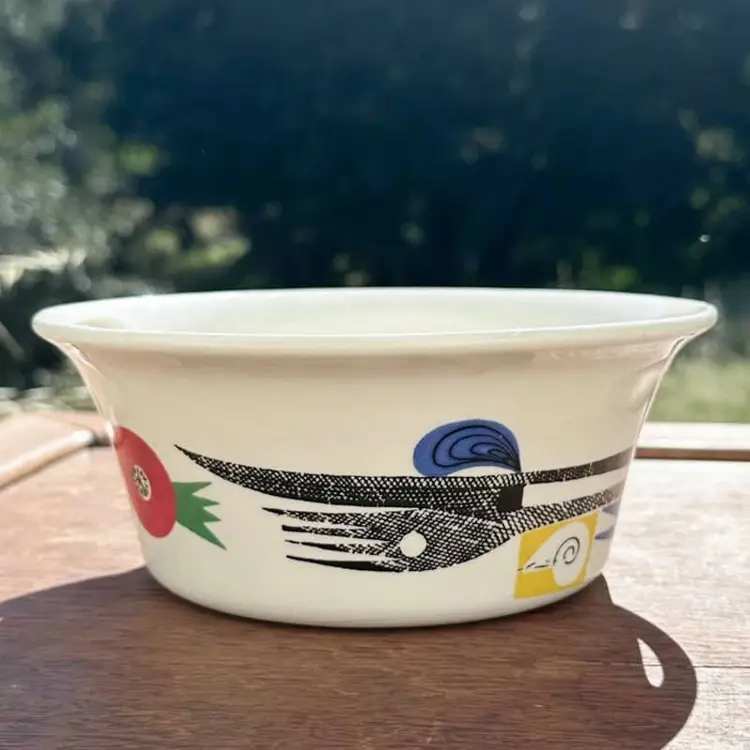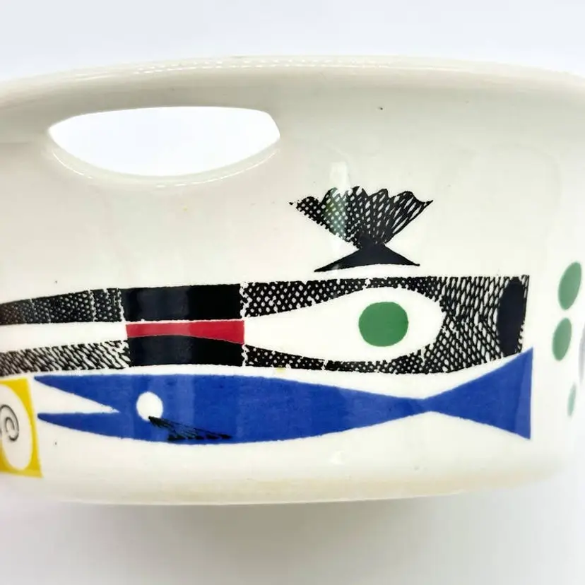It's all about the graphics with this serving dish. It could find a new life or maybe there is a lid out there and someone just needs a replacement.