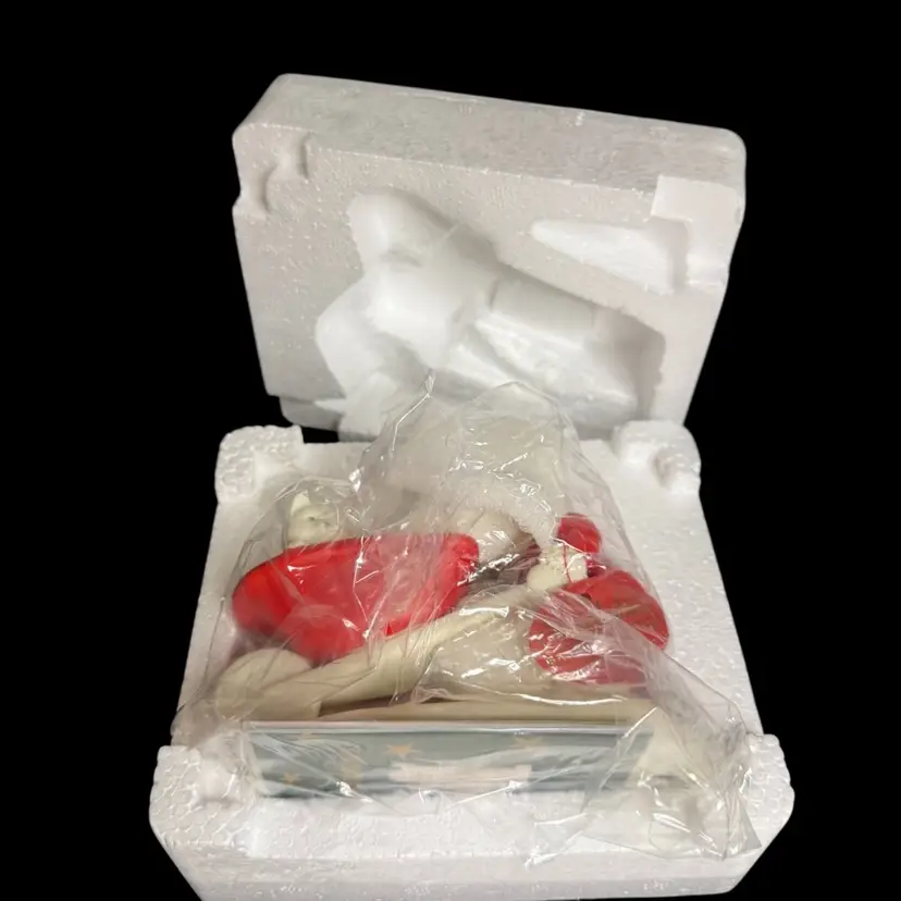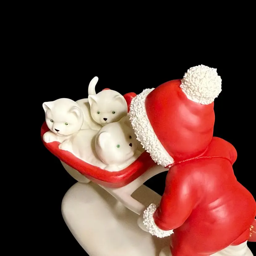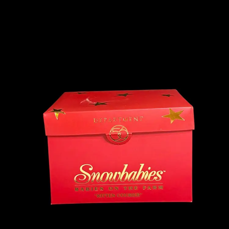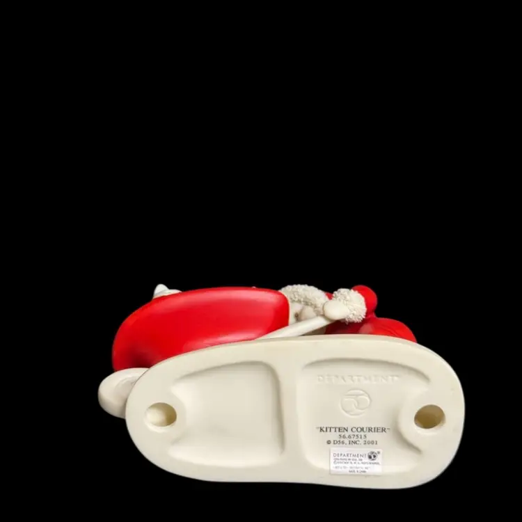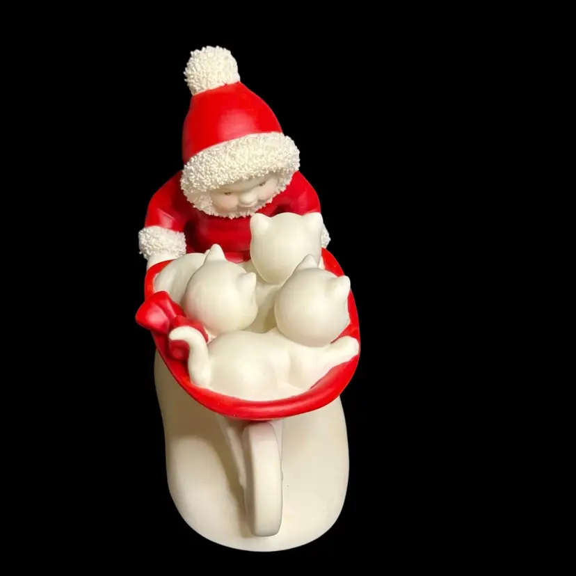 Embrace the charm of winter with the Department 56 Snowbabies 2001 "Kitten Courier" figurine. This delightful piece features the beloved Snowbaby character accompanied by her three feline friends, all crafted from fine bisque porcelain.