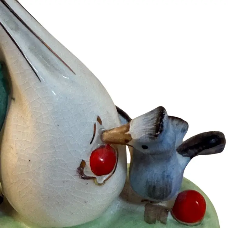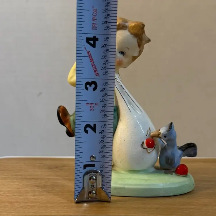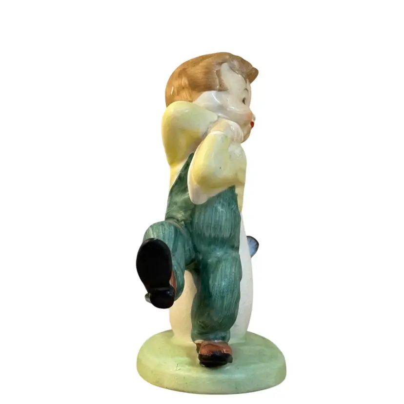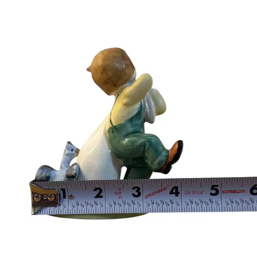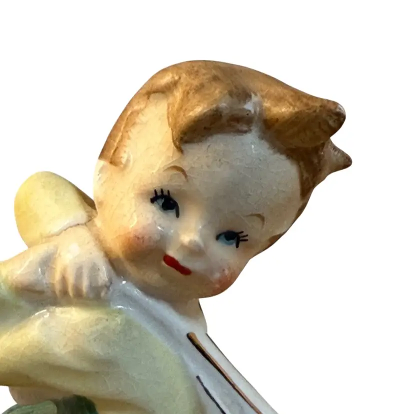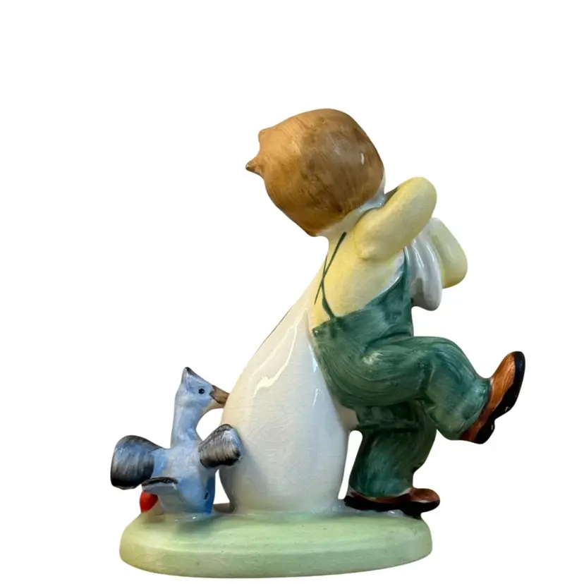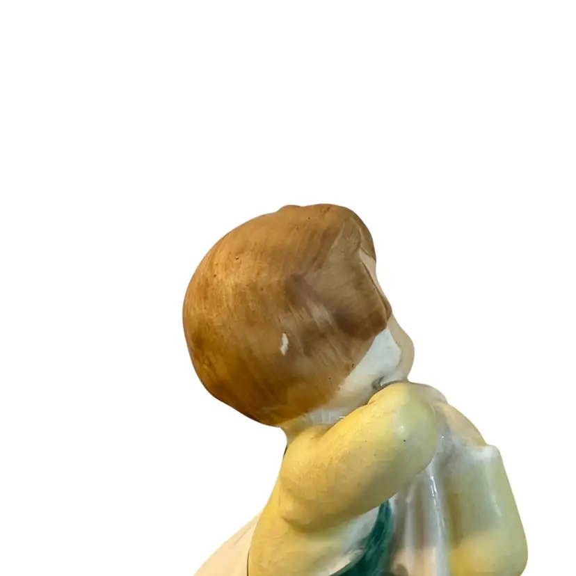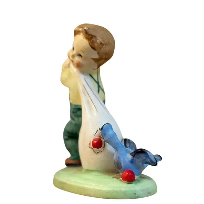 Adorable ceramic figurine of a child pulling a sack of cherries 🦄.