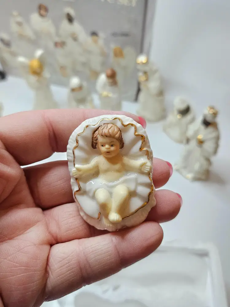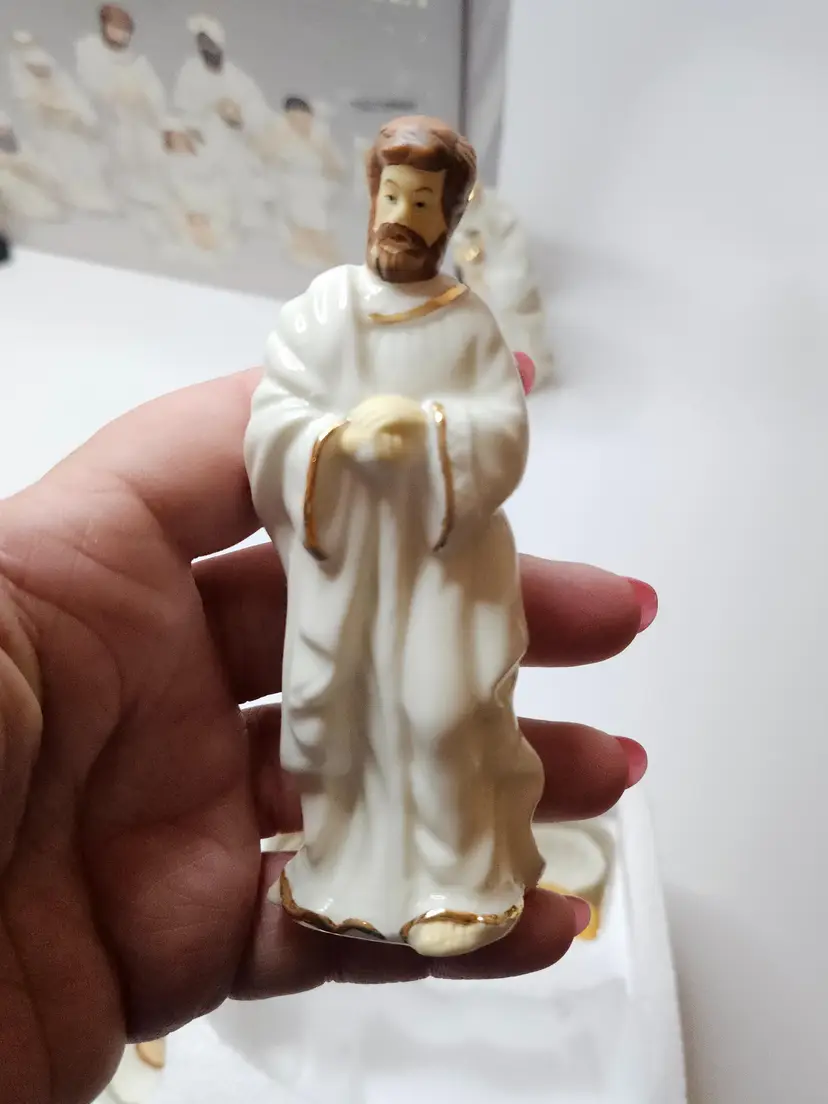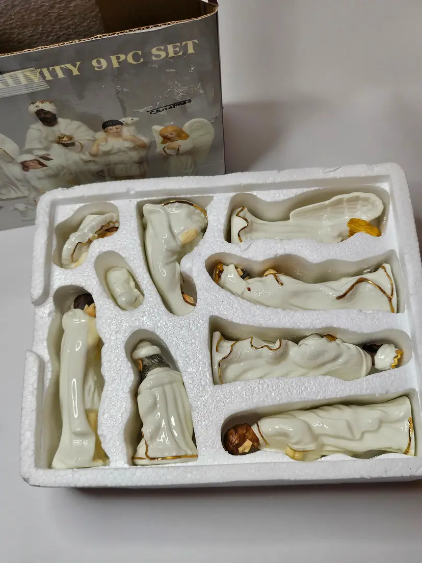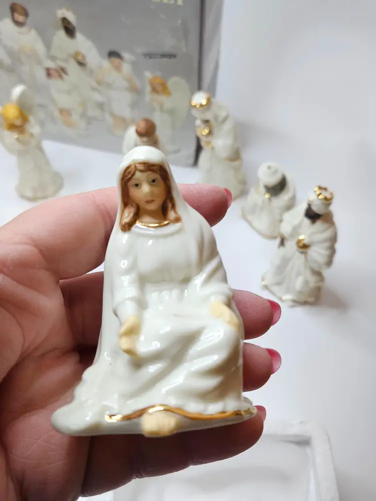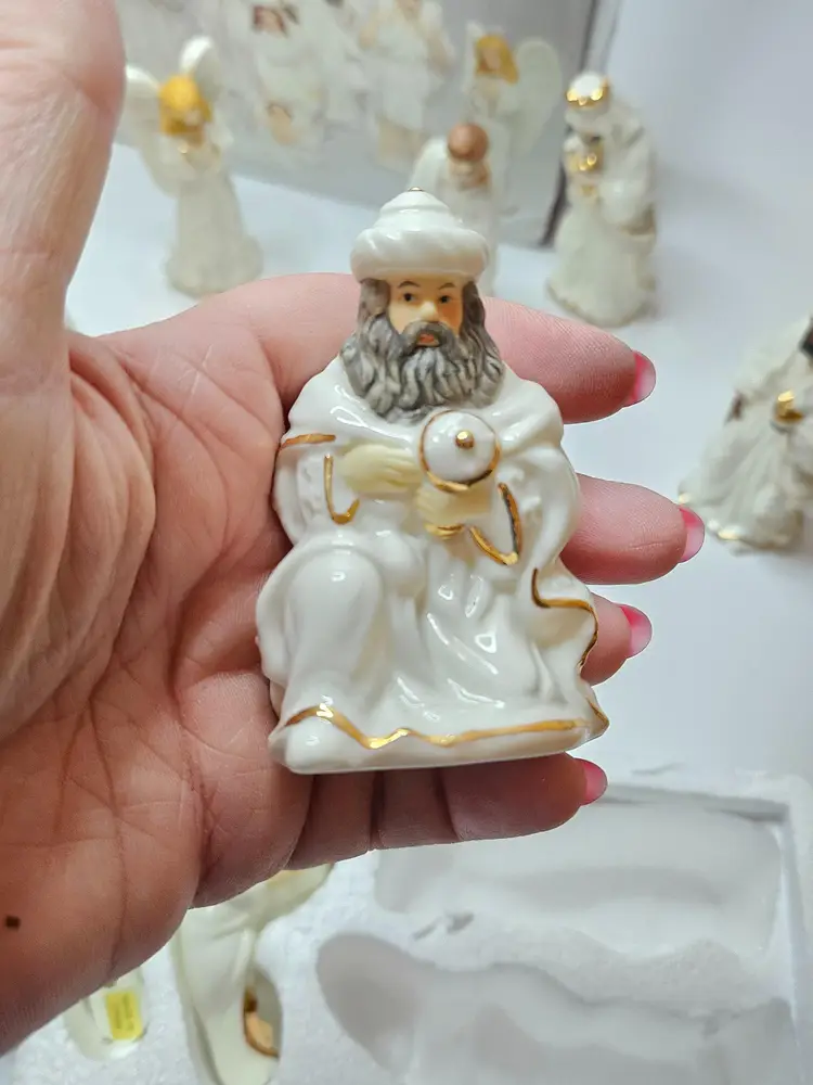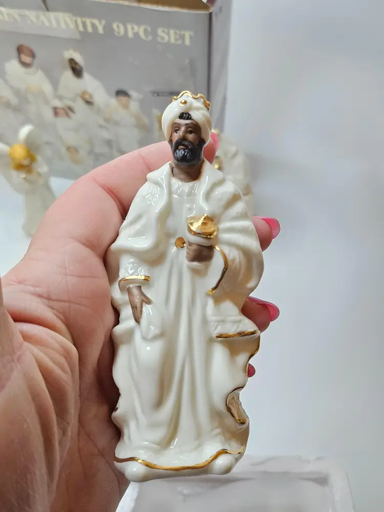 Celebrate the holiday season with this beautiful 9-piece nativity set from Galleria Inc. The set features the holy family, including baby Jesus, Angel Gabriel, Shepherds, Joseph, Three Kings, Sheep, Wise Men, and Mary. Crafted from fine porcelain with exquisite attention to detail, this set is perfect for religious collectors and enthusiasts alike.