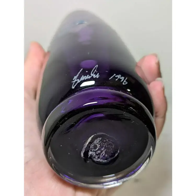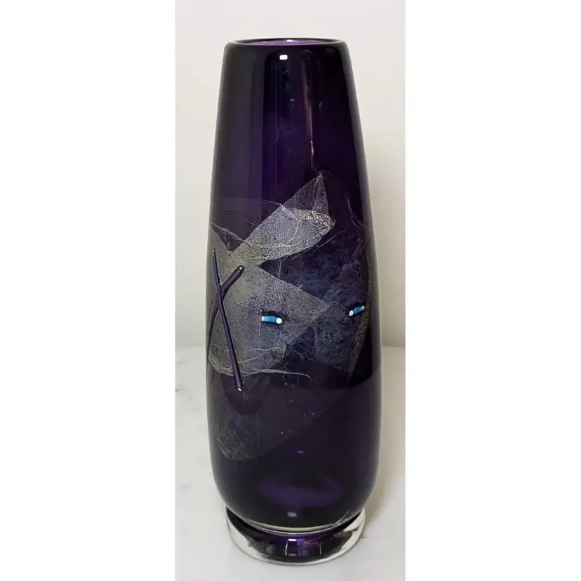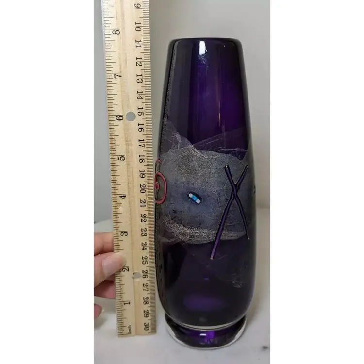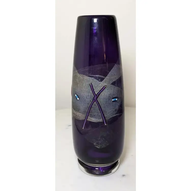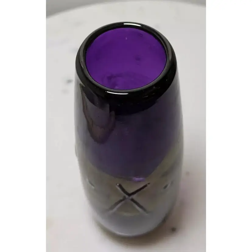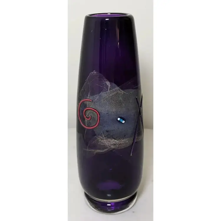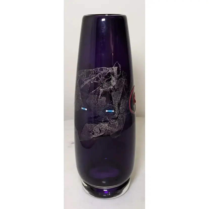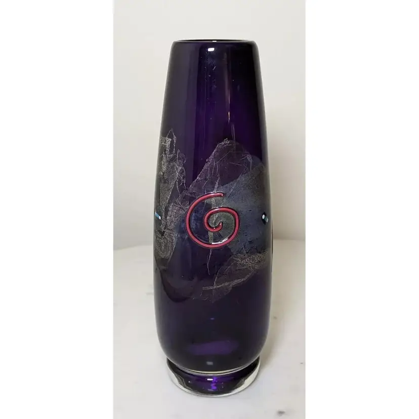 Abstract purple vase with red swirl and purple X. It is made by Fineline studios. Please see photos for condition