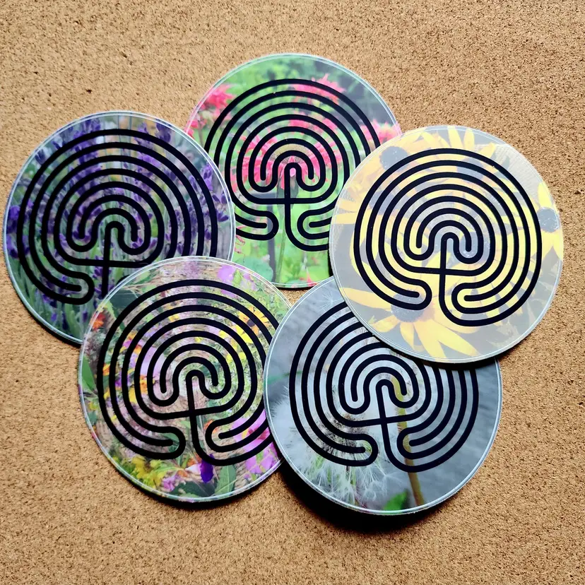 Use this "portable" finger labyrinth anywhere. 4x4 Circle Sticker Photo & Design by Jenza (a Veriditas trained Labyrinth Facilitator) Outsourced to print (in USA)
