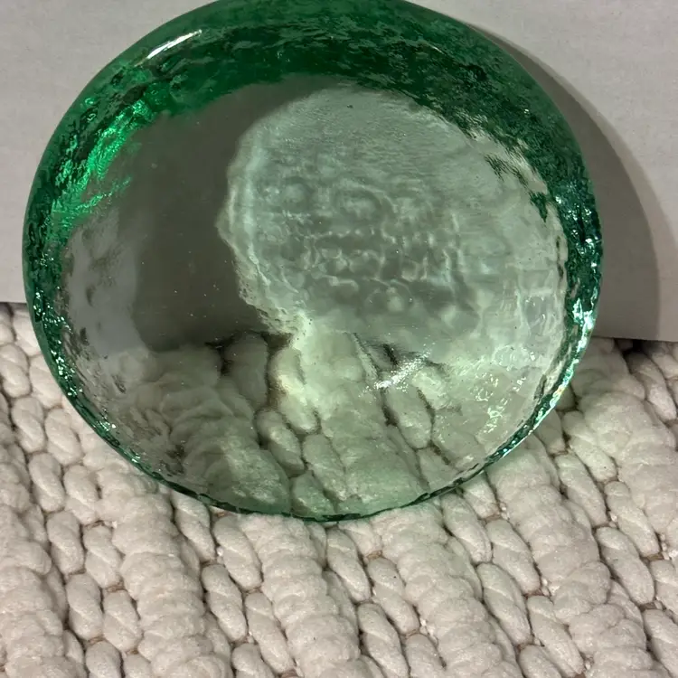 Beautiful Fire and Light disc that can be used as a paperweight on your desk or maybe to put a candle on. These are very versatile but beautiful celery green glass. It is not marked just as most of the discs were not marked. 4" across x 3/4" tall. Excellent condition, no call outs. Please view my shop for two additional discs by fire and light!