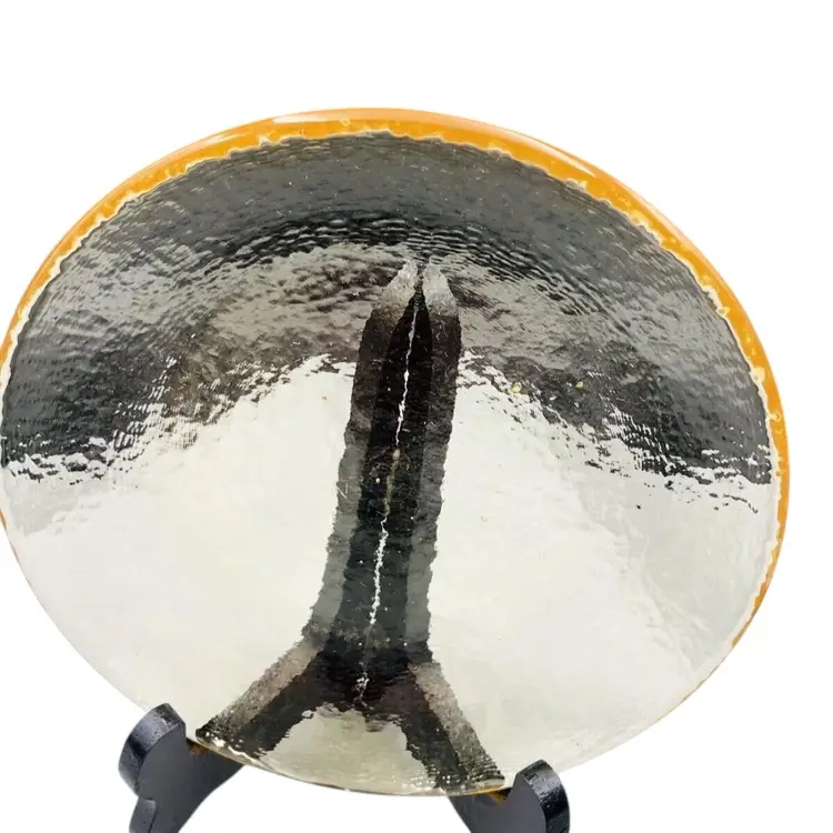 This piece from the Fire and Light Recycled Glass product line is unboxed and is an original unsigned. The care instructions for this piece recommend hand washing only. This saucer is perfect for serving dessert or bread and will add an elegant touch to any table setting. 6.5 inches.