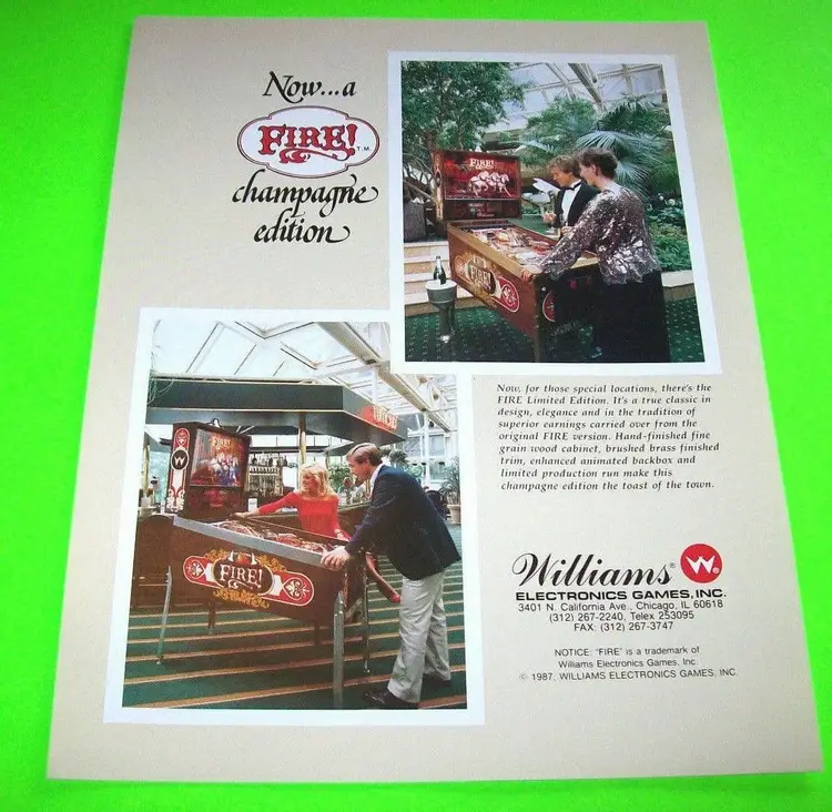 Original: Paper Advertising Flyer Material: Paper Model: Fire Pinball: Flyer Modified Item: No Country/Region of Manufacture: United States Year: 1987 Brand: Williams