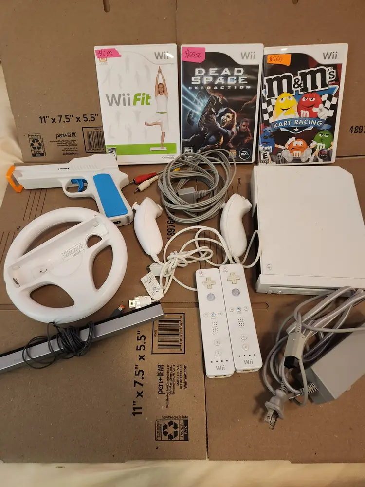 Working, tested, Nintendo wii with all the cords and multiple controllers and 3 games.