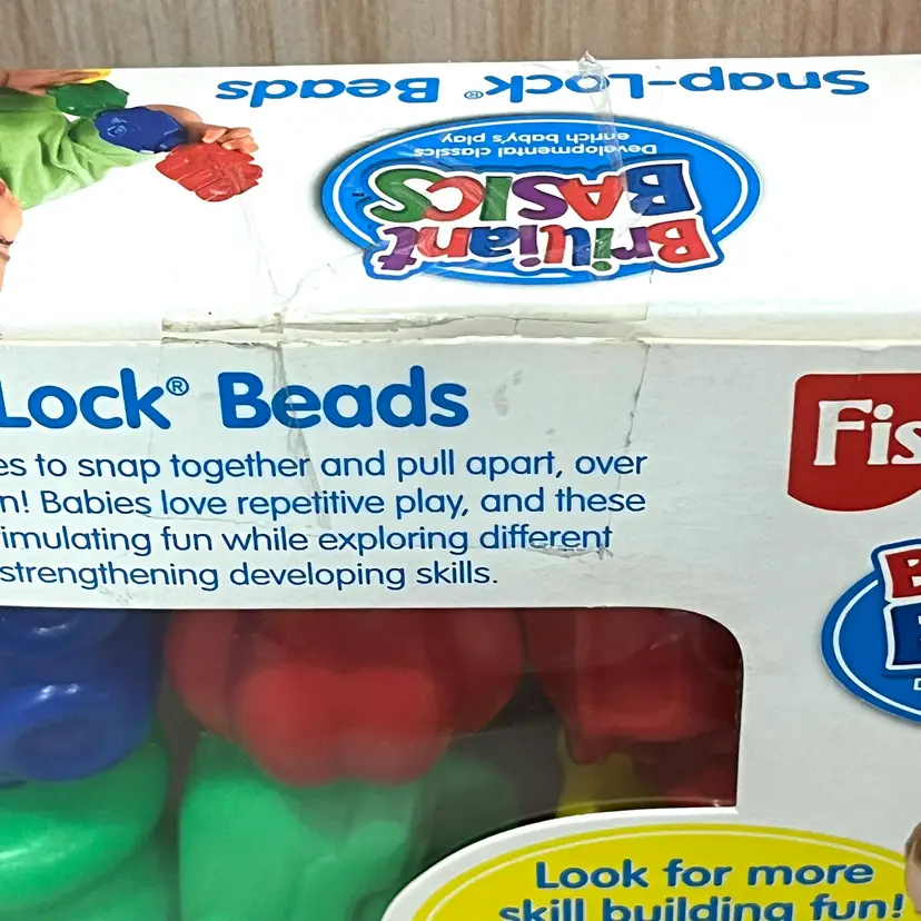 Fisher Price Brilliant Basics Snap Lock Beads 2006. New- Open Box. Beads have never been used. Box has become re-taped & is out of shape from storing.