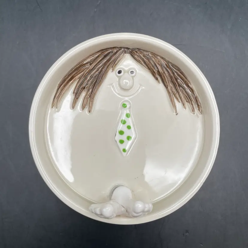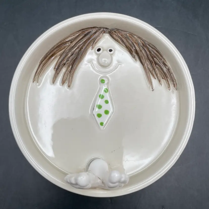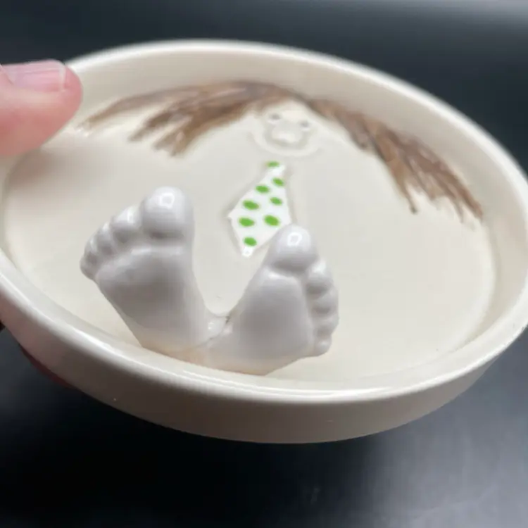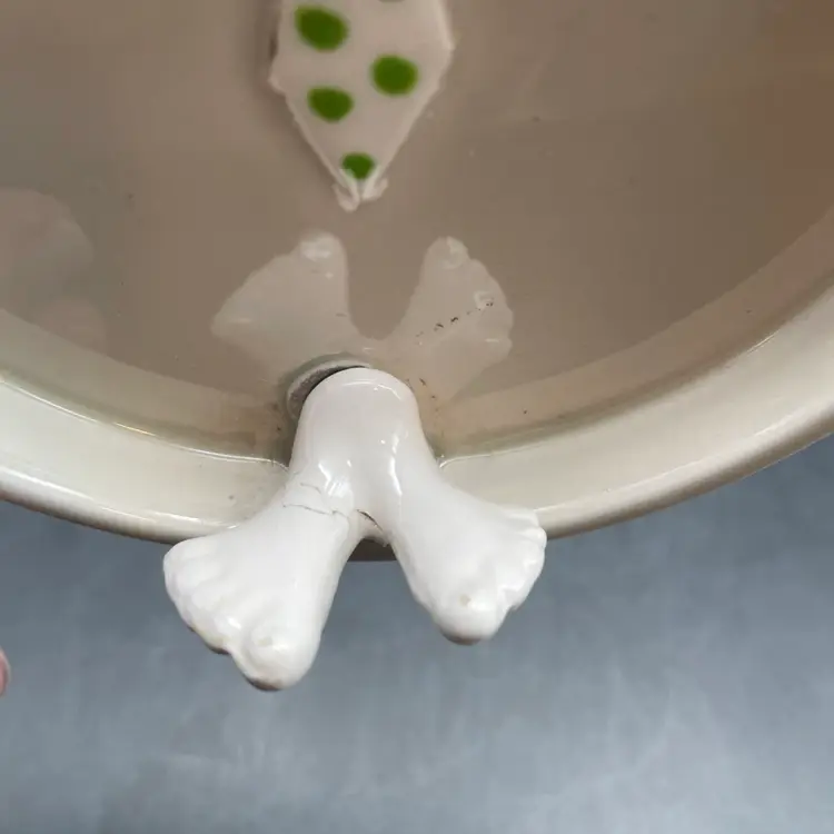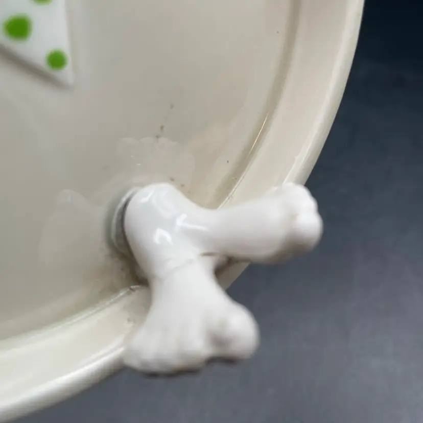 Made in the 1970’s. One foot has been previously repaired. See pictures. 4” in diameter.