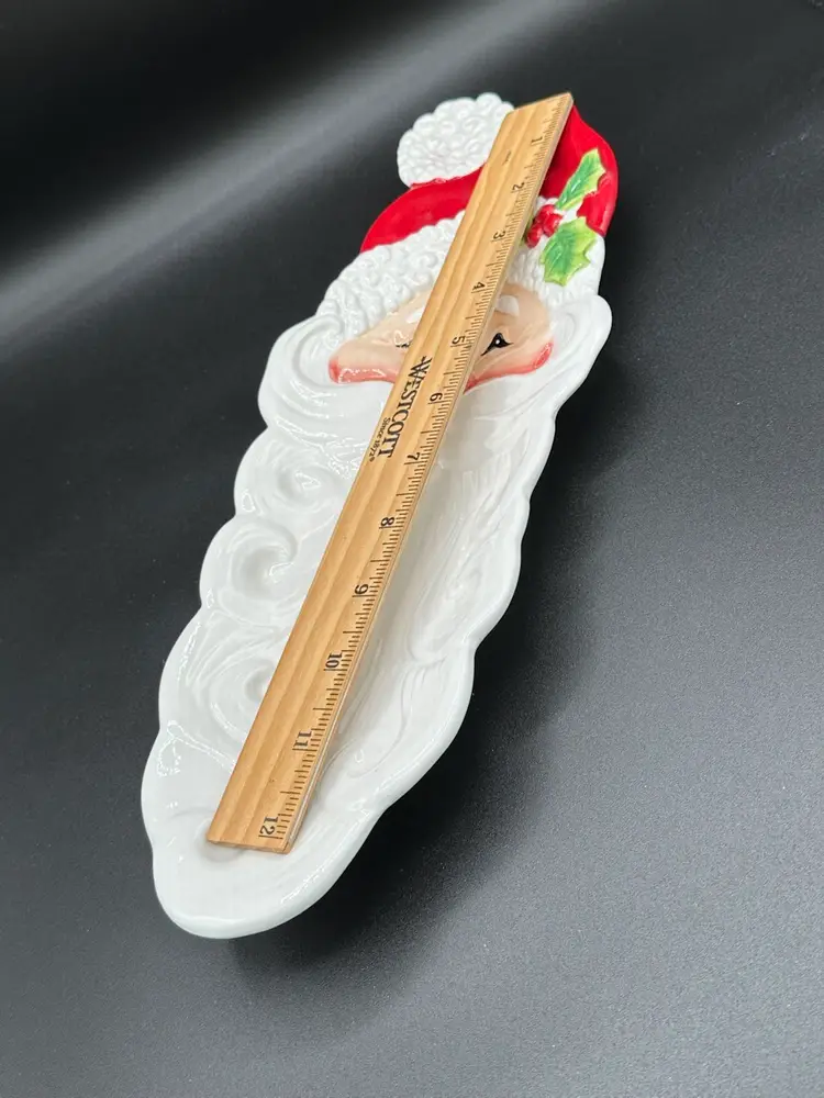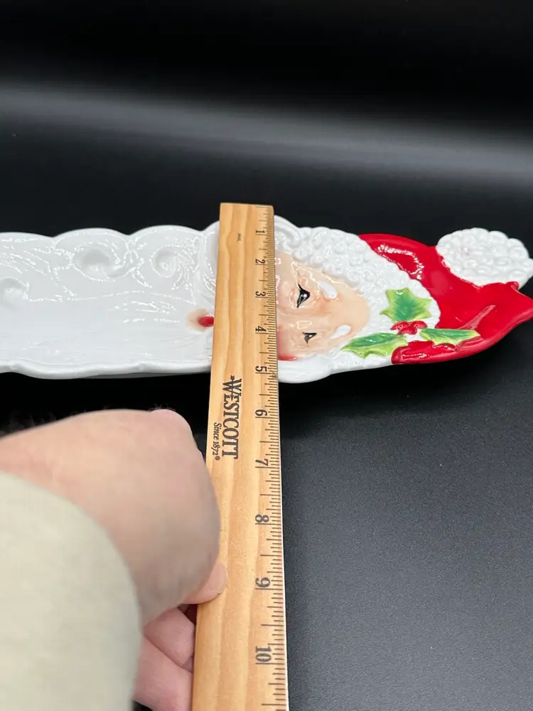 Measures 13 3/4" long and is in very nice, clean, like new condition with no problems of any sort. Does have a place in the back to string a string or a wire for hanging.
