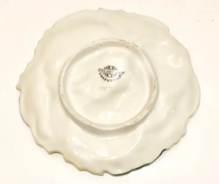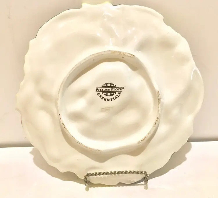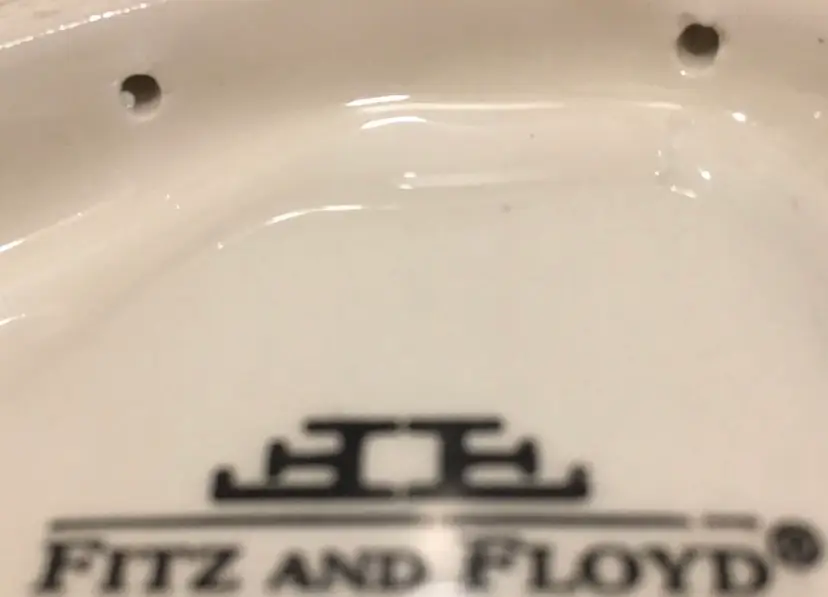 Excellent condition. No chips or cracks. Small amount of wear on footer. Marked Fitz and Floyd on back.
