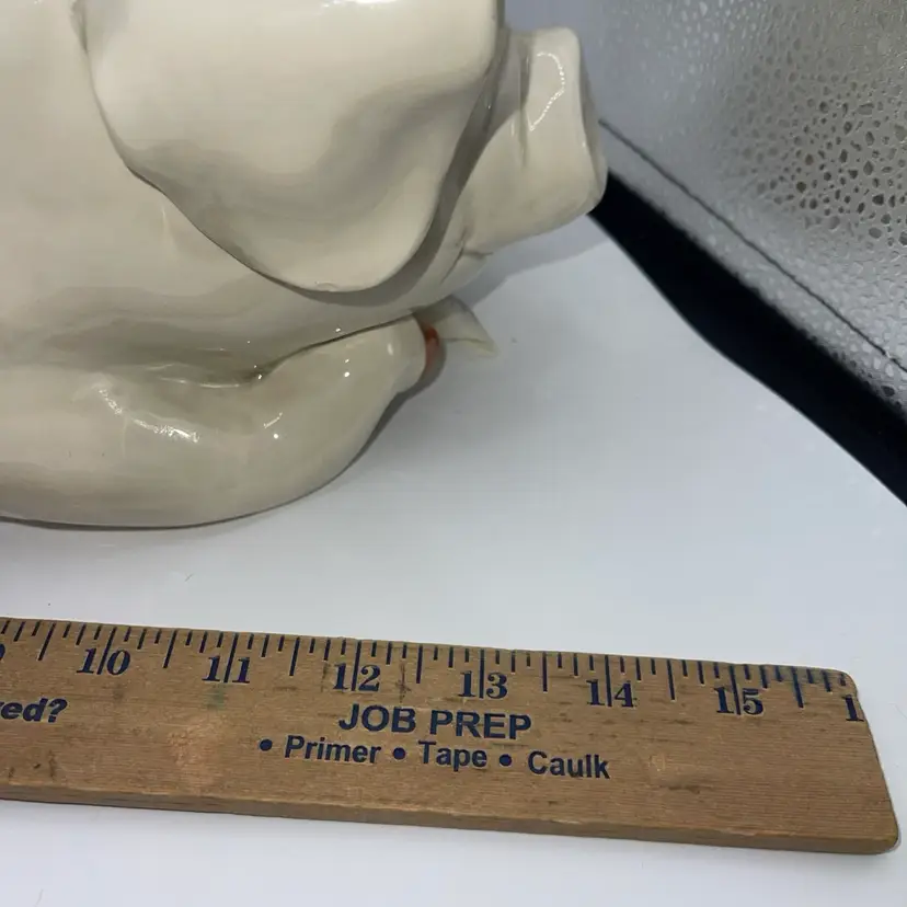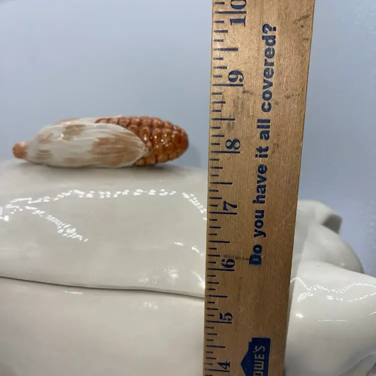 This comes with the lid, the ladle and the pig tureen . The handle on the lid is a corn cob. It is marked fits, and Floyd on the bottom it measures approximately 13.5” x 8.5”.