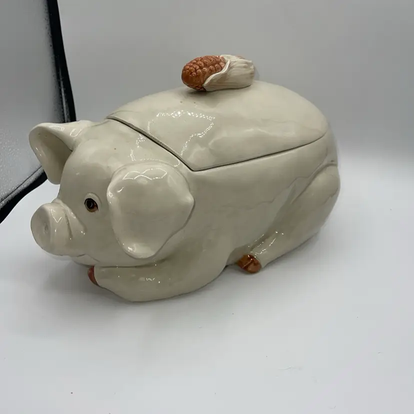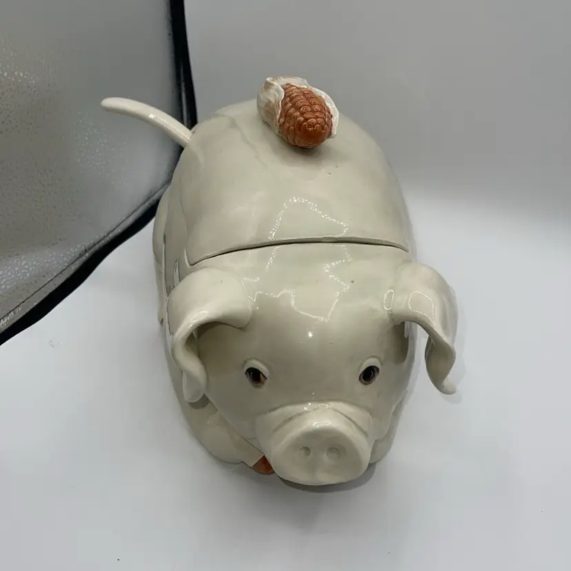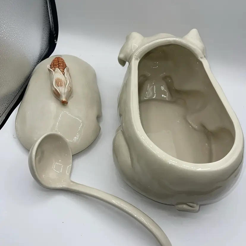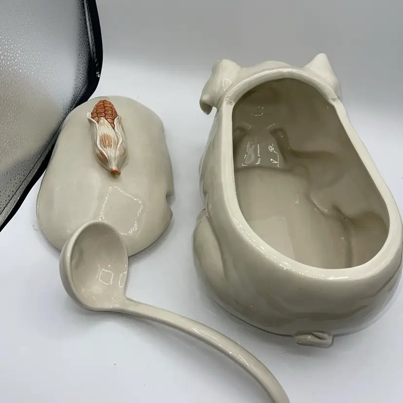 FITZ AND FLOYD PIG Soup Tureen Ladle Lid 13.5” X 8.5” Corn Handle READ