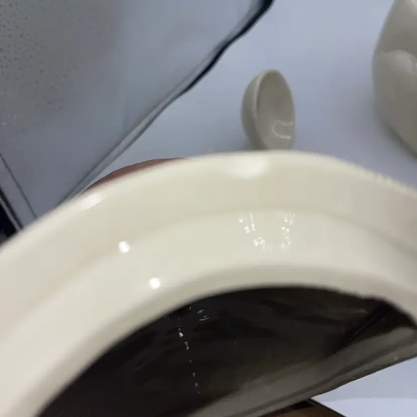 Please note in the lid there are two chips. I’ve taken pictures. They are the last two pictures it does not affect the function of the Tureen but I didn’t want to disclose that. Thank you for looking