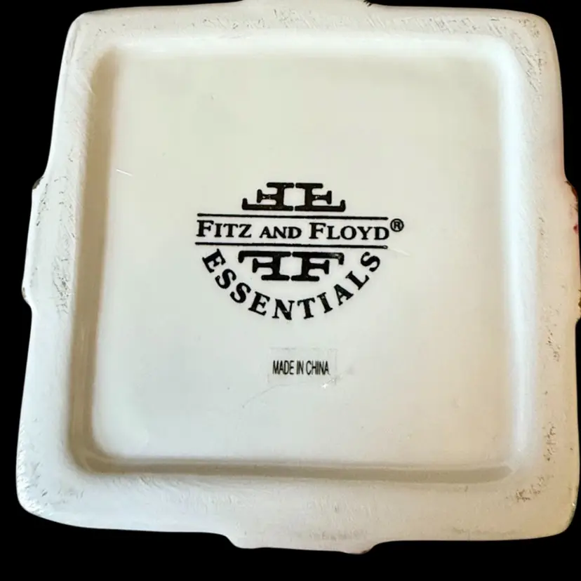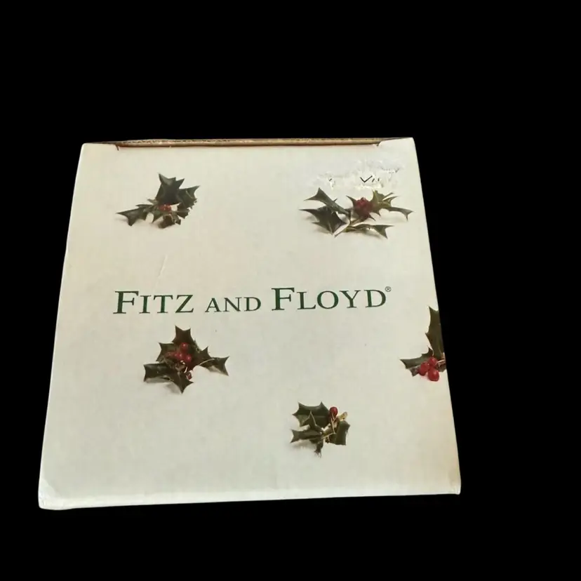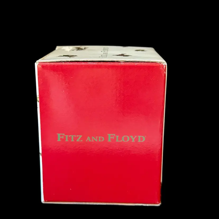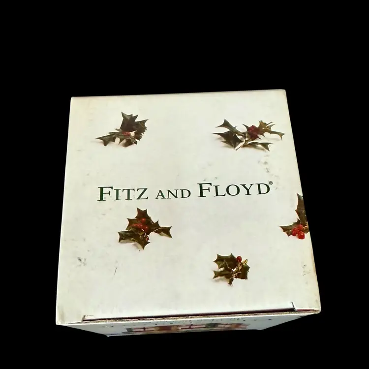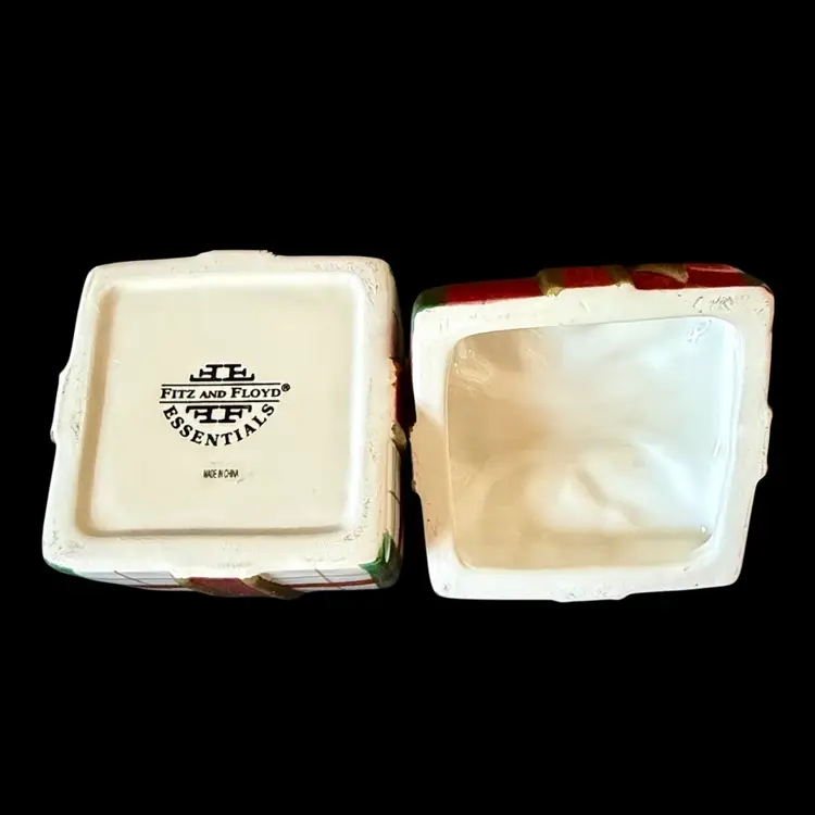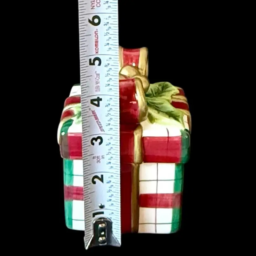 Vintage Fitz And Floyd Plaid Christmas Lidded Trinket Box Present Bow Holly Ceramic Red, White, Green. With box.