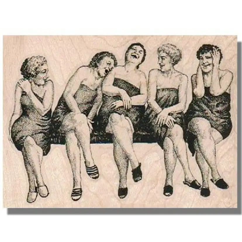Five Ladies Rubber Stamp Size: 4-1/4 x 3 inches Red Rubber Handmade • Great for card making, gift tags, labels, scrapbooking, journals and crafting • First purchase on District? Use this code for $5 off a $10 min purchase. ALOHAG34