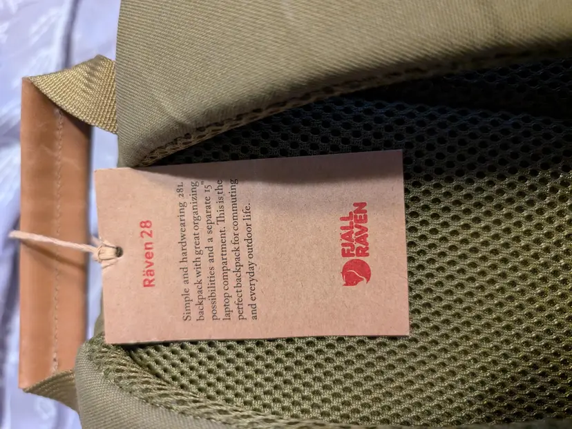 Raven 28 with tags. Zippered main compartment with padded sleeve for laptops up to 15" Padded Air mesh back panel with shoulder straps. Zippered front compartment with mesh organizer pockets inside. Zippered inside security pocket.
