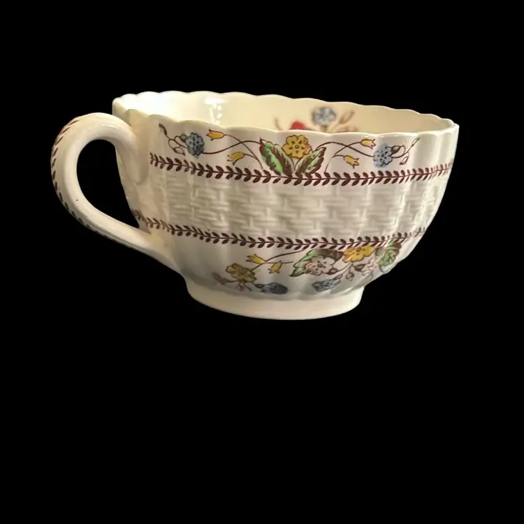 Add a touch of timeless elegance to your collection with this exquisite Cowslip Flat Cup by Spode. Crafted in England, this piece features the charming Chelsea Wicker shape adorned with delicate multicolor flowers, embodying the classic beauty of Spode’s designs.