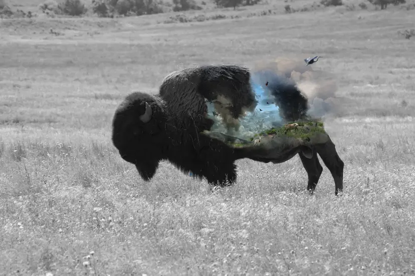This work is meant to remind the viewer about the beauty of nature. How often do you walk outside and see a bird (or in this case a bison) and don't have a second thought about it? This image depicts a bison and several other animals that, if we are not careful, will go extinct in our lifetime. It is a reminder that we have a duty to this planet and all its inhabitants.