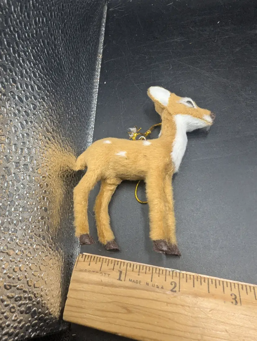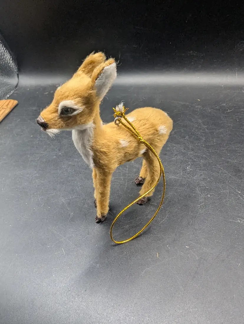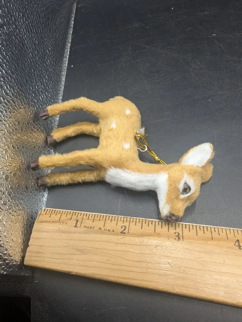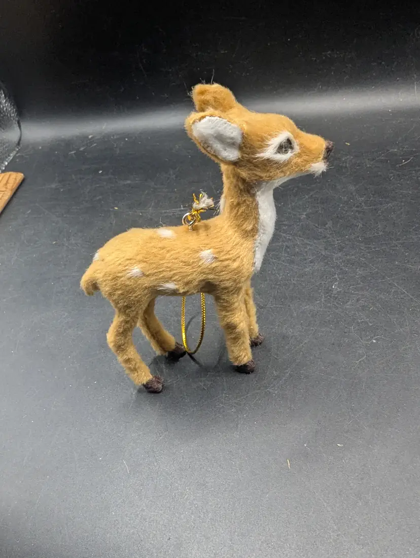 This is a lovely Flocked Fawn Christmas Ornament - Spotted Baby Deer Decoration. They look to be like new and there are 6 available. Please see all pictures for condition and measurements.