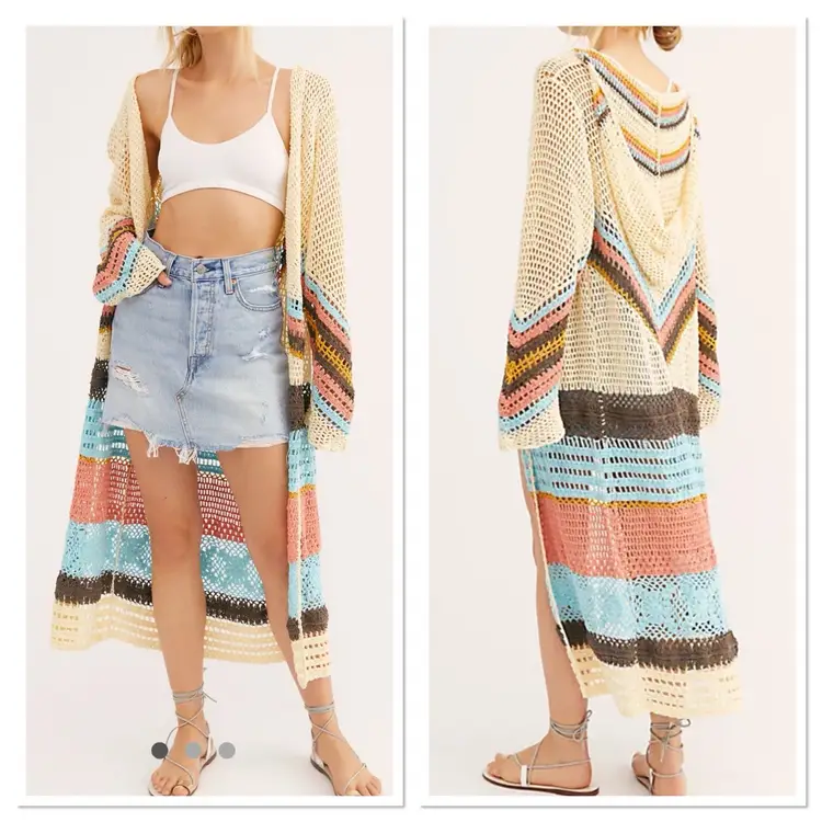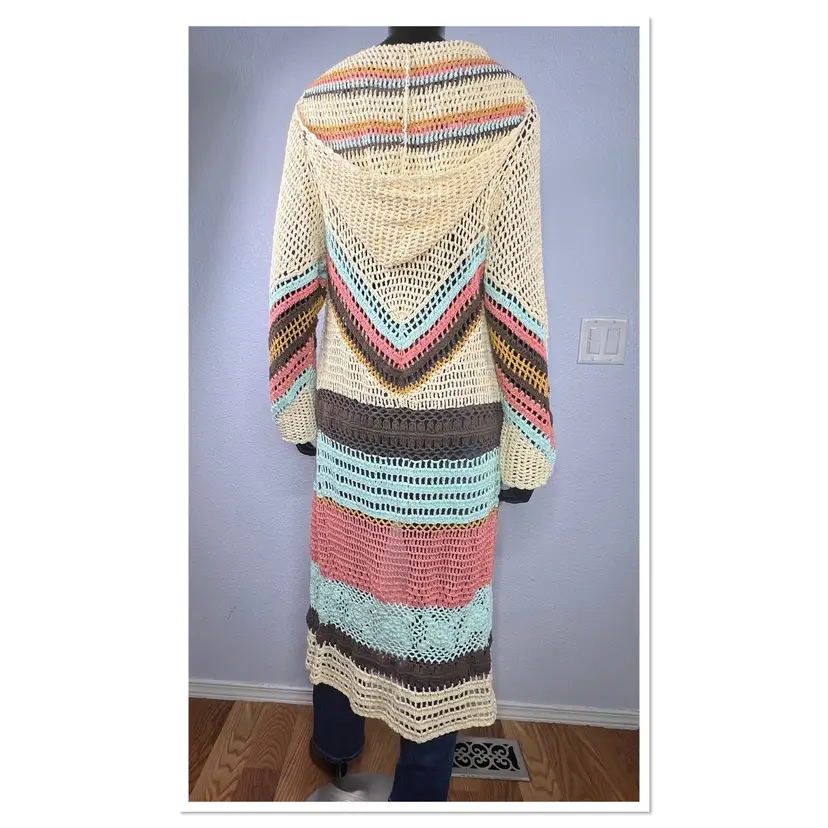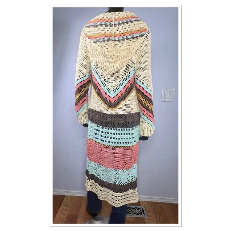 Flook 100% Cotton Retro Hooded Crochet Cardigan Jacket Sz S