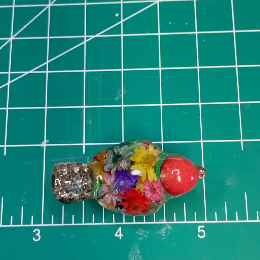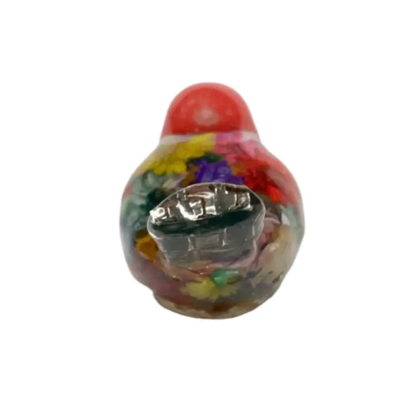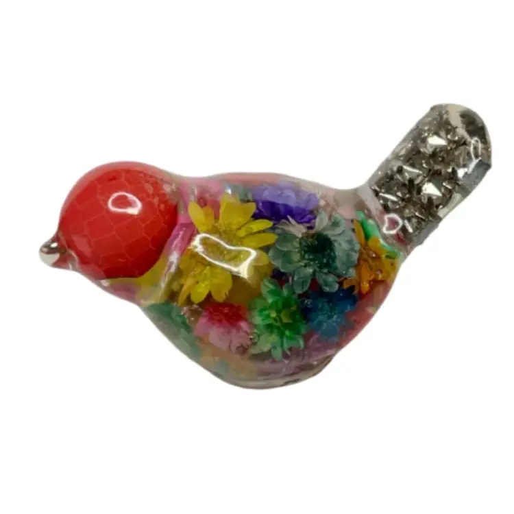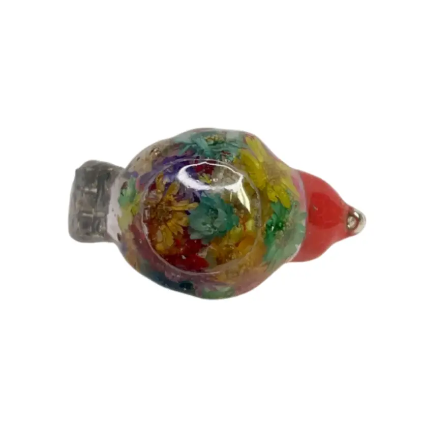 These tiny little birds are handmade from UV resin and bits of baubles and bling from my craft jewelry pile or whatever else I can throw in. No two are alike.