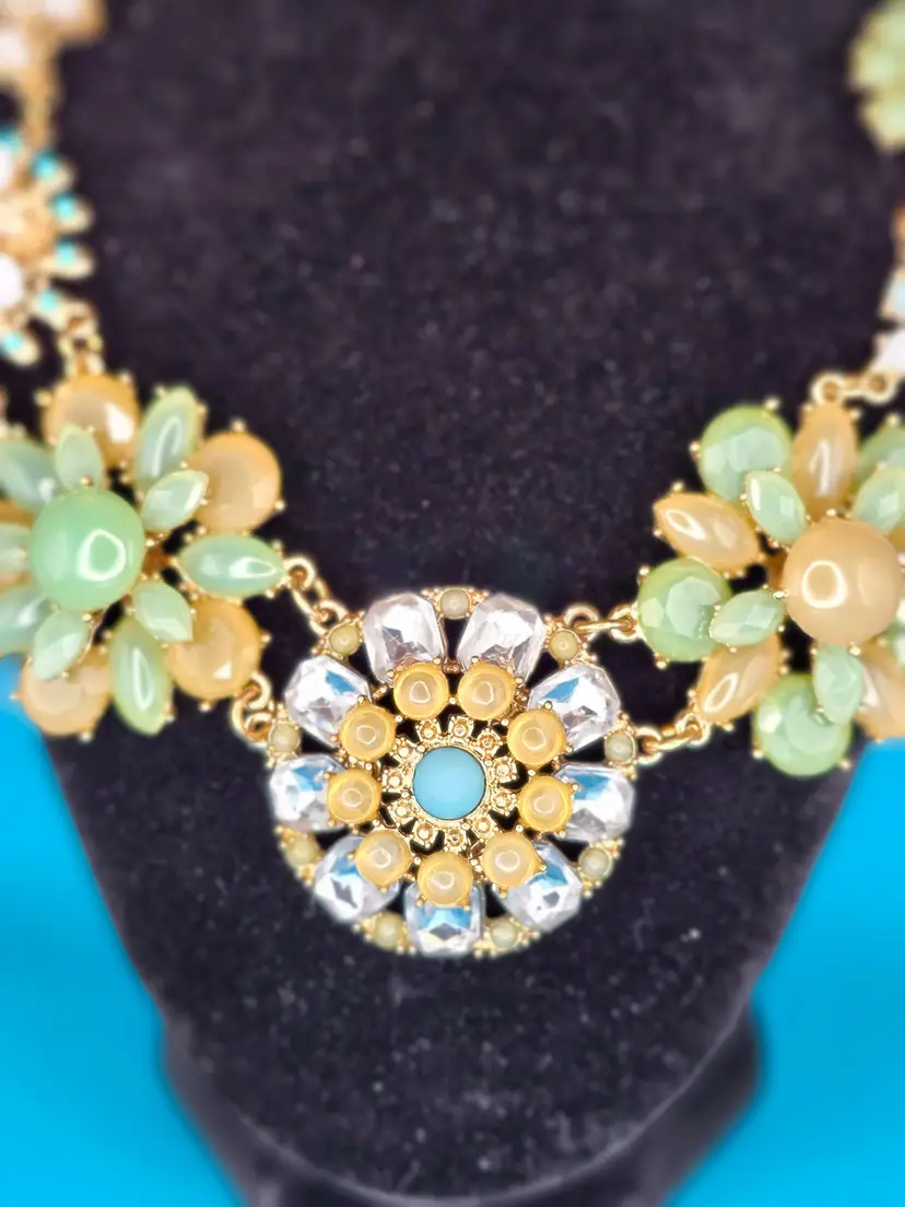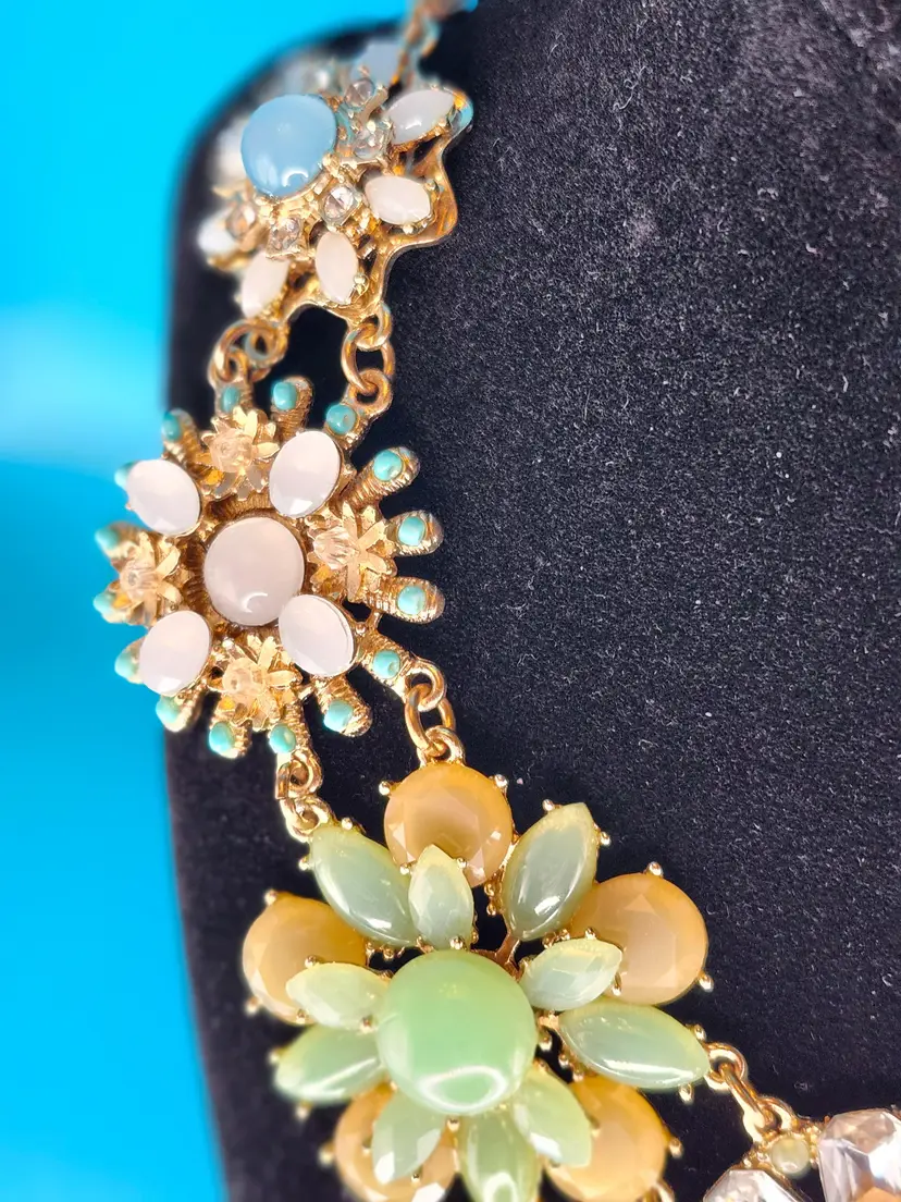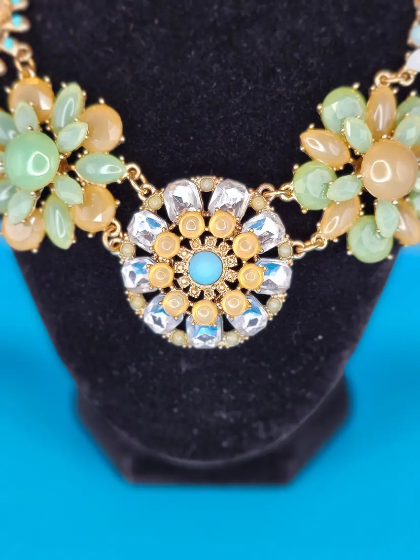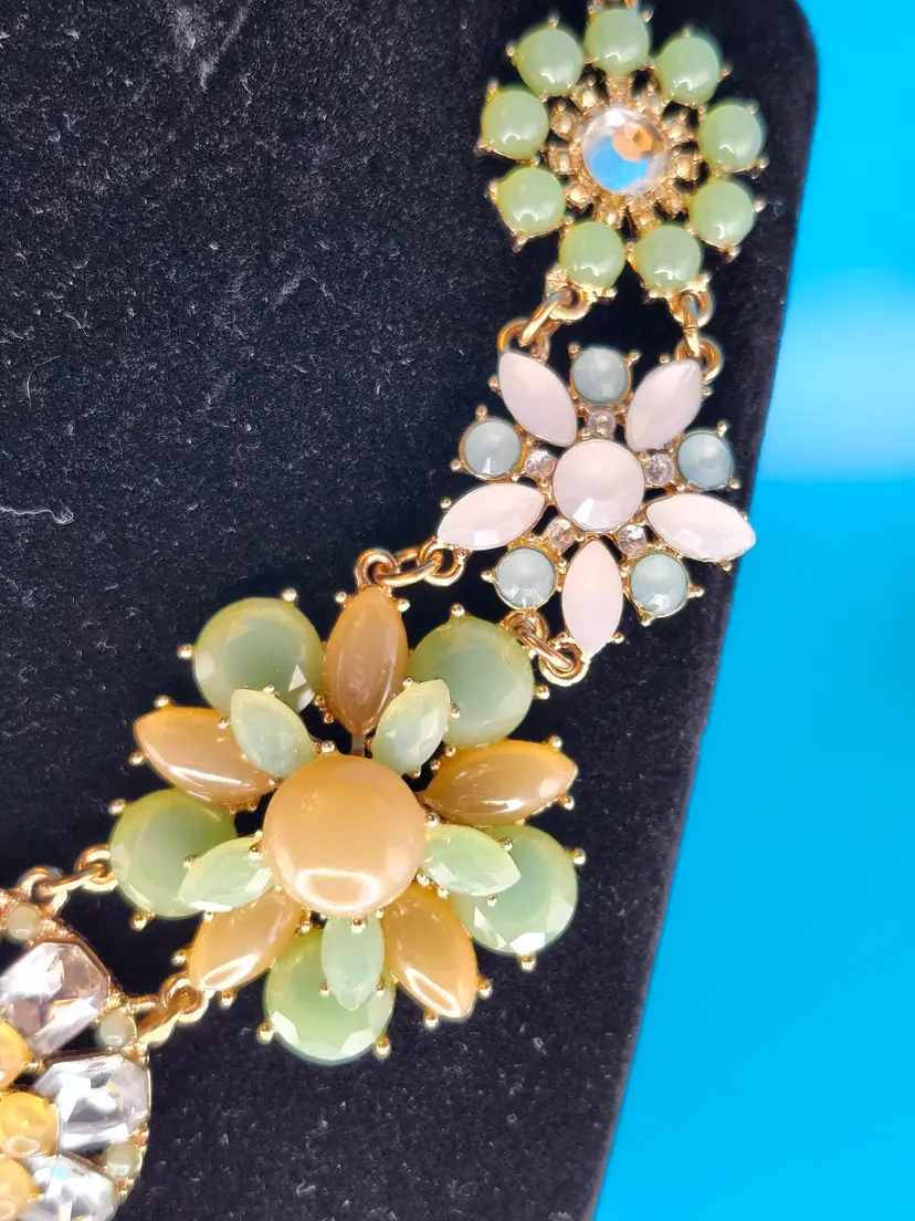 Brighten up your look with this Floral Burst Statement Necklace. Featuring vibrant flower designs with pastel beads and sparkling rhinestones, it's perfect for adding a playful touch to any outfit. Styling Suggestions: • Spring Vibes: Pair with a flowy dress for a fresh, seasonal look. • Bold Accent: Let it shine against a simple top. • Party Ready: Wear it to a garden party or brunch for a standout accessory.