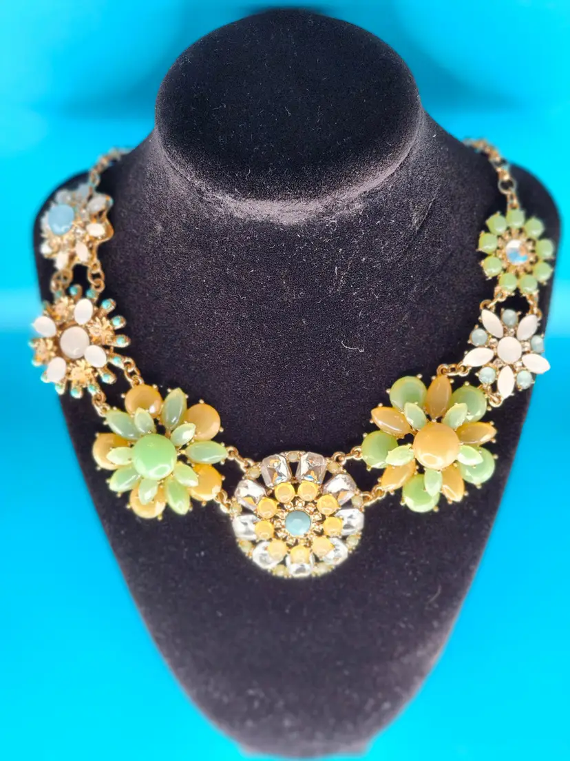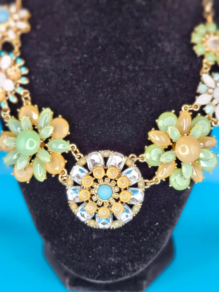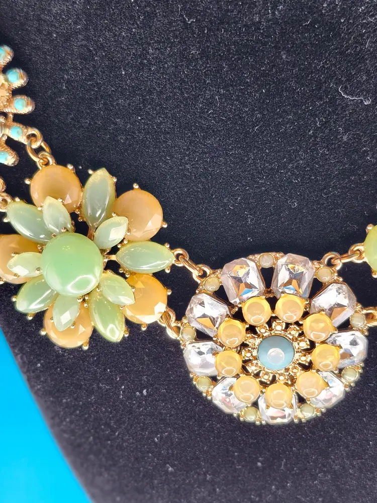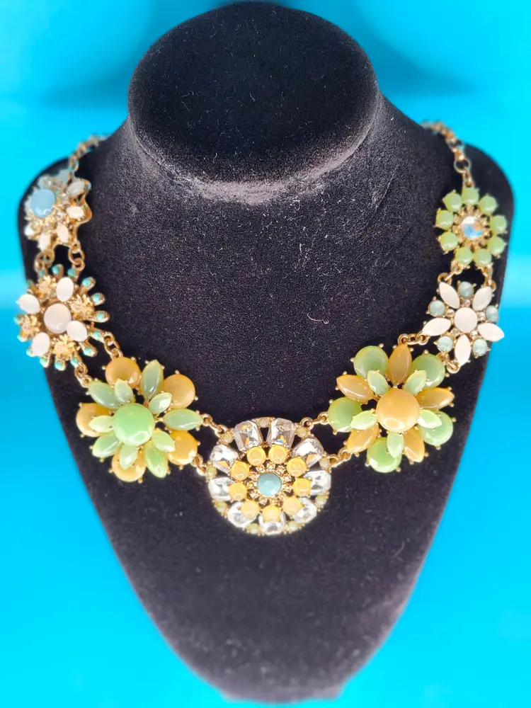 Brighten up your look with this Floral Burst Statement Necklace. Featuring vibrant flower designs with pastel beads and sparkling rhinestones, it's perfect for adding a playful touch to any outfit. Styling Suggestions: • Spring Vibes: Pair with a flowy dress for a fresh, seasonal look. • Bold Accent: Let it shine against a simple top. • Party Ready: Wear it to a garden party or brunch for a standout accessory.
