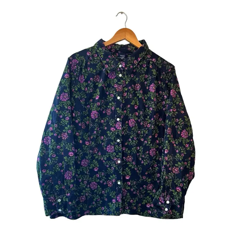 In excellent condition. Slight pleated at the shoulder. Seams along back and front to add shaping. Super soft fabric. Heavy enough to wear as a shacket, light enough to wear as a blouse.