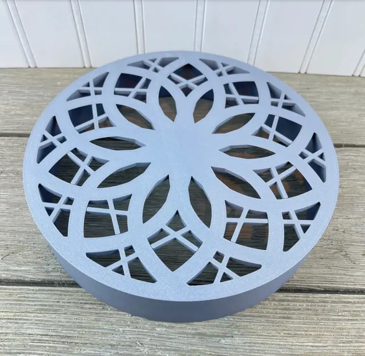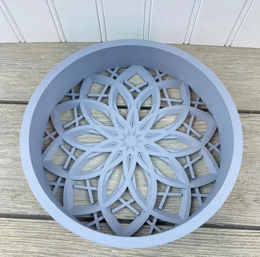 The tray as a diameter of 8" with a 7.25" opening and measures 9/16" tall.