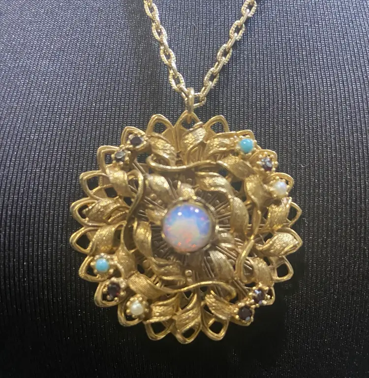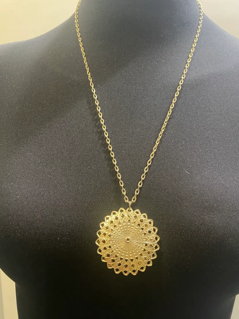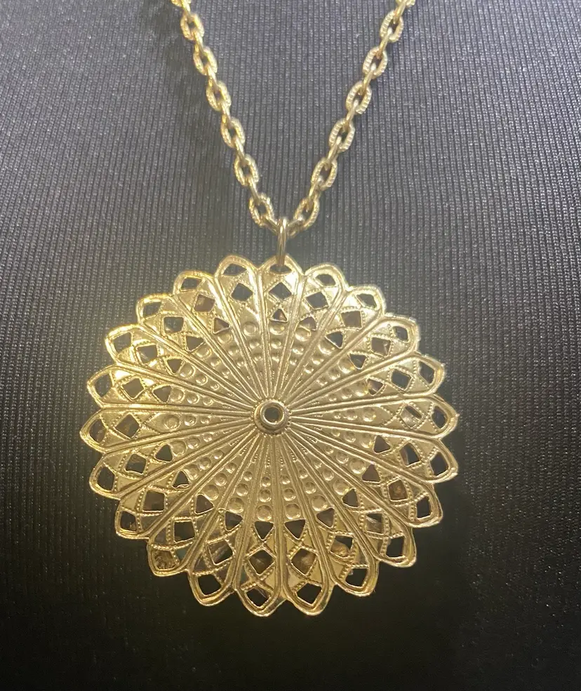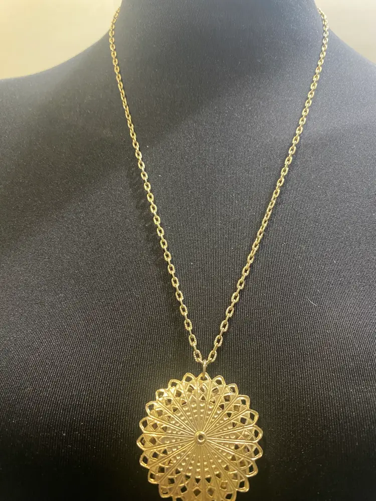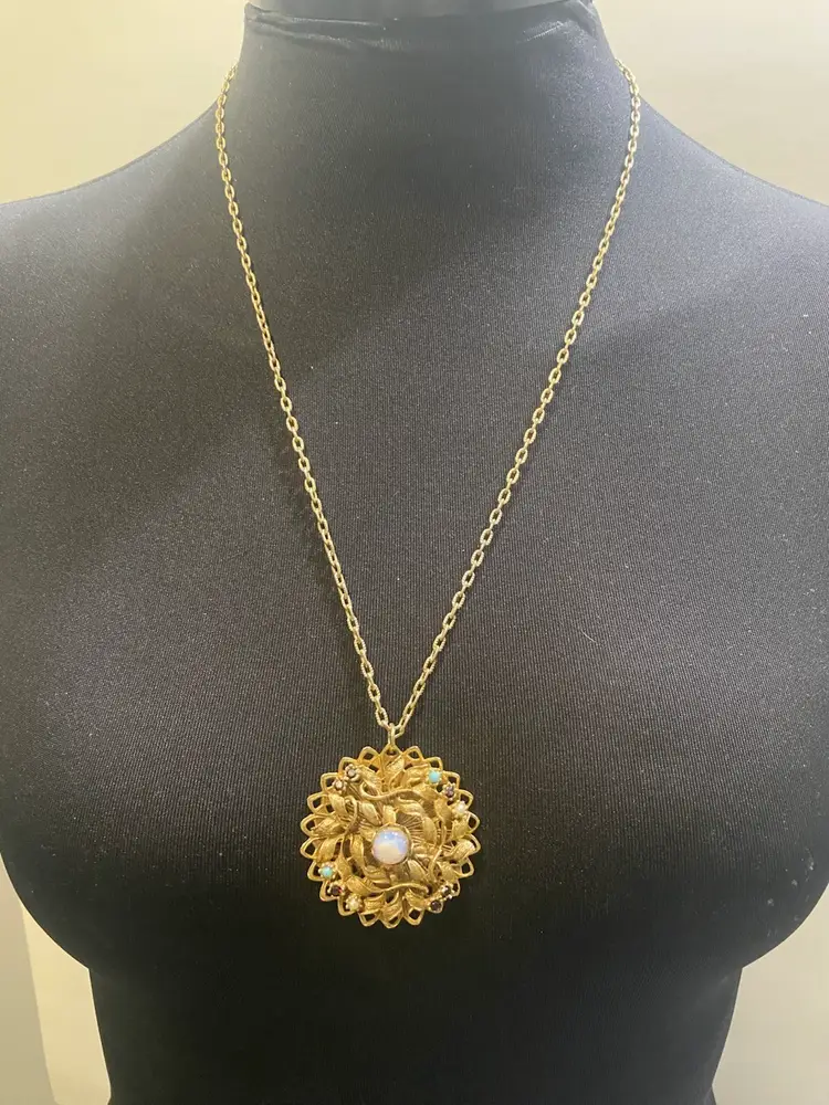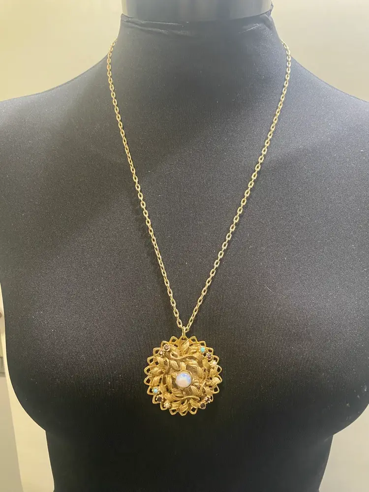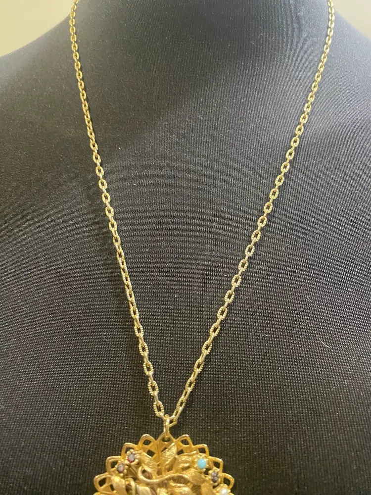Floral Design Pendant Necklace. Costume jewelry .Needs cleaning storage locker find