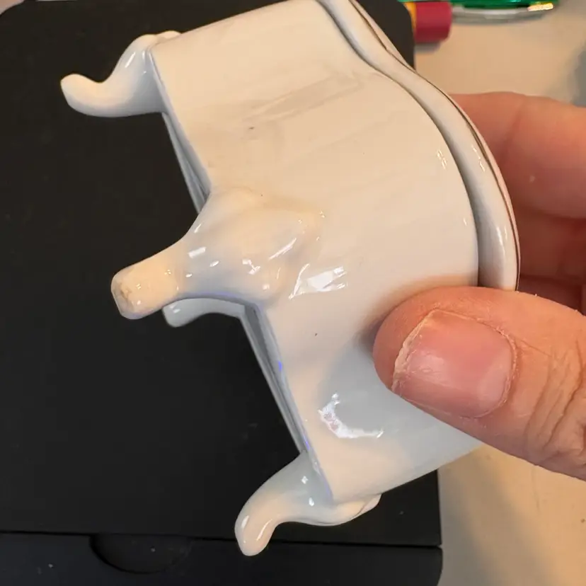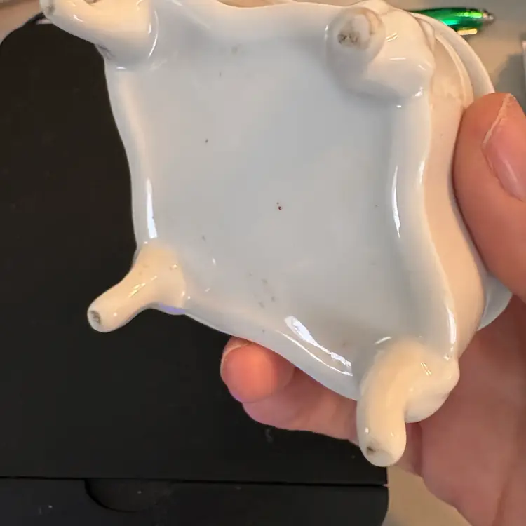 Roughly 3.75” long, 3” wide and 2” tall. No markings but possibly Brinns?