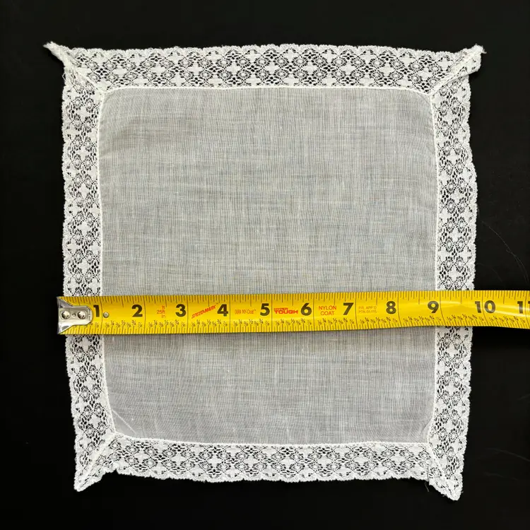 Measures approx. 10” x 10”, made of cotton.