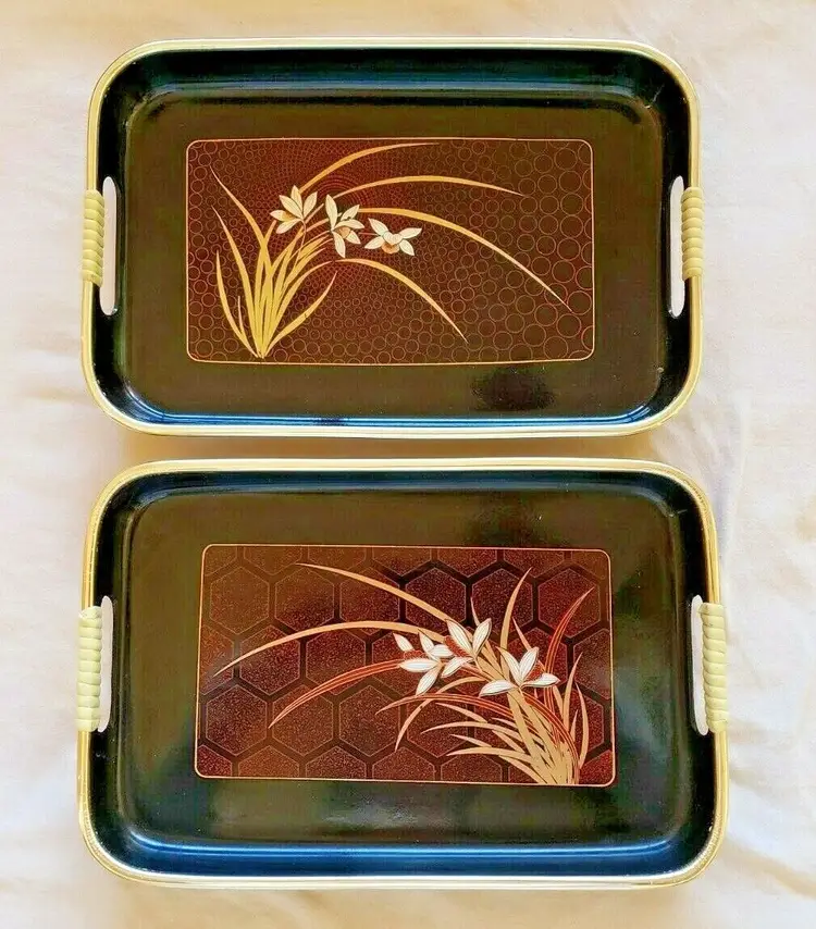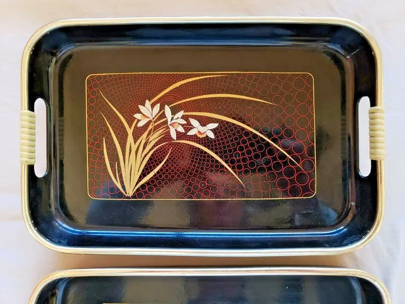 Number of Items in Set: 2 Pattern: Floral Antique: No Size: Small Custom Bundle: No Color: Red, Black, White, Gold Material: Lacquered Small Trays Modified Item: No Vintage: Yes Type: Small Trays Features: Tray Country/Region of Manufacture: Japan Finish: Gloss Handmade: No