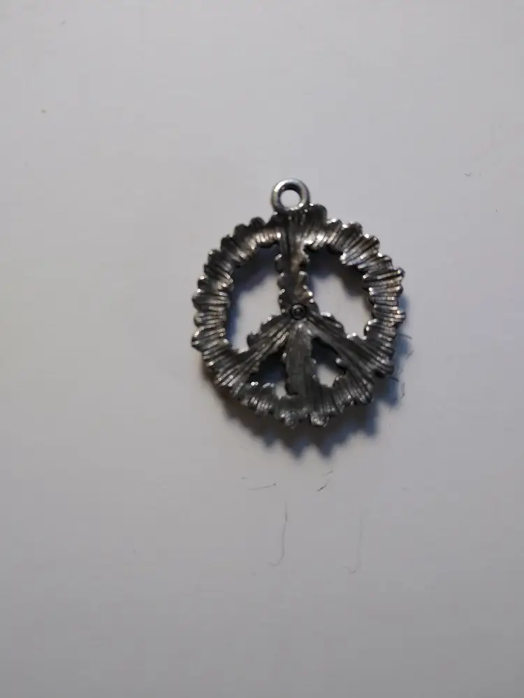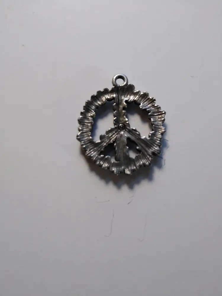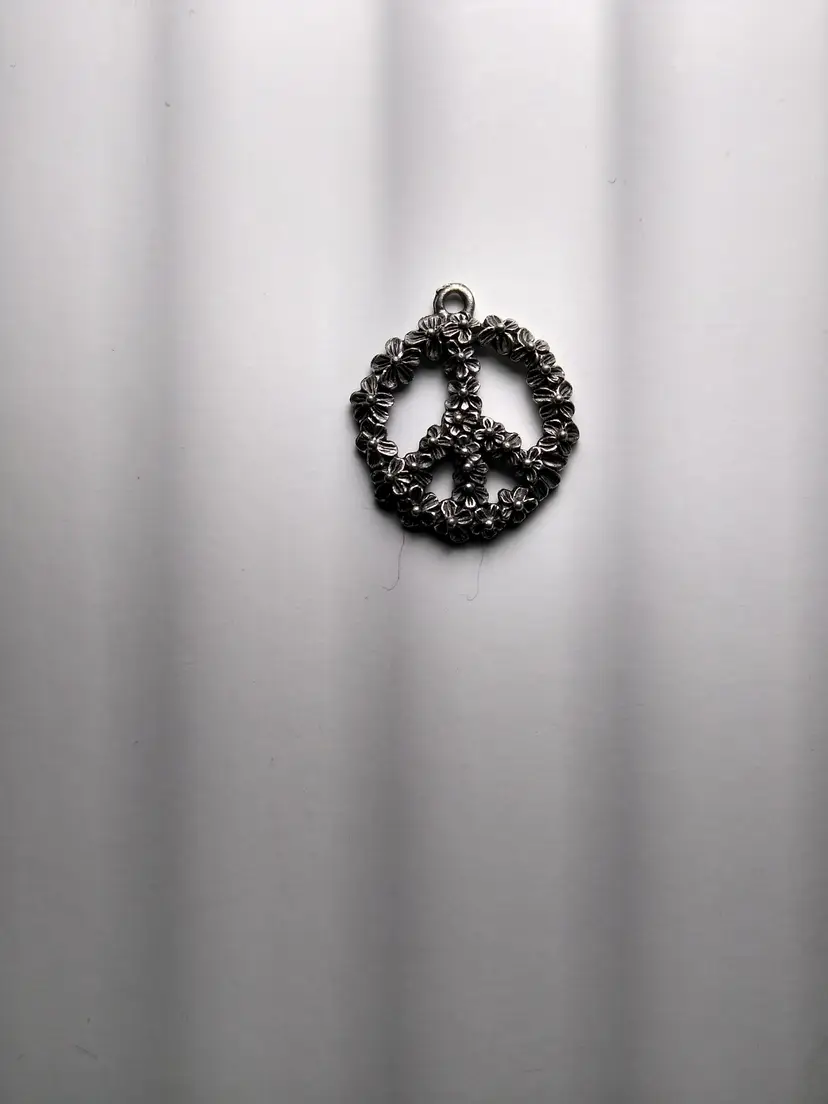 Embrace peace and style with this charming floral peace sign pendant. Crafted with intricate small floral details forming the iconic peace symbol, this silver-tone pendant is a perfect accessory for adding a touch of bohemian, hippie, or retro flair to any outfit. It's ideal for creating your own necklace or adding to an existing charm bracelet. A versatile piece for everyday wear or special occasions, celebrating harmony and nature.