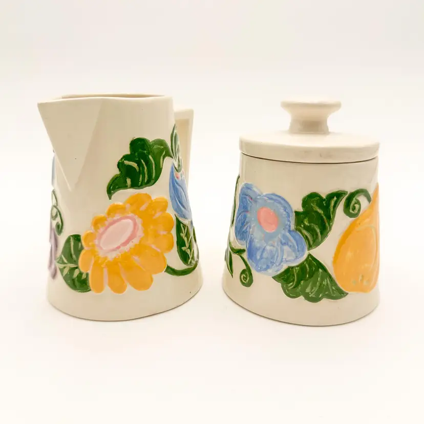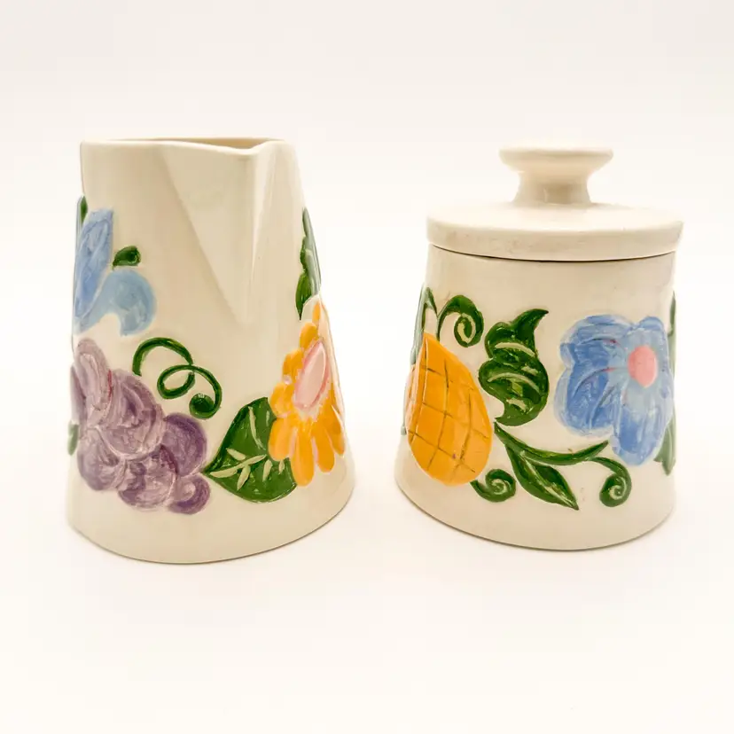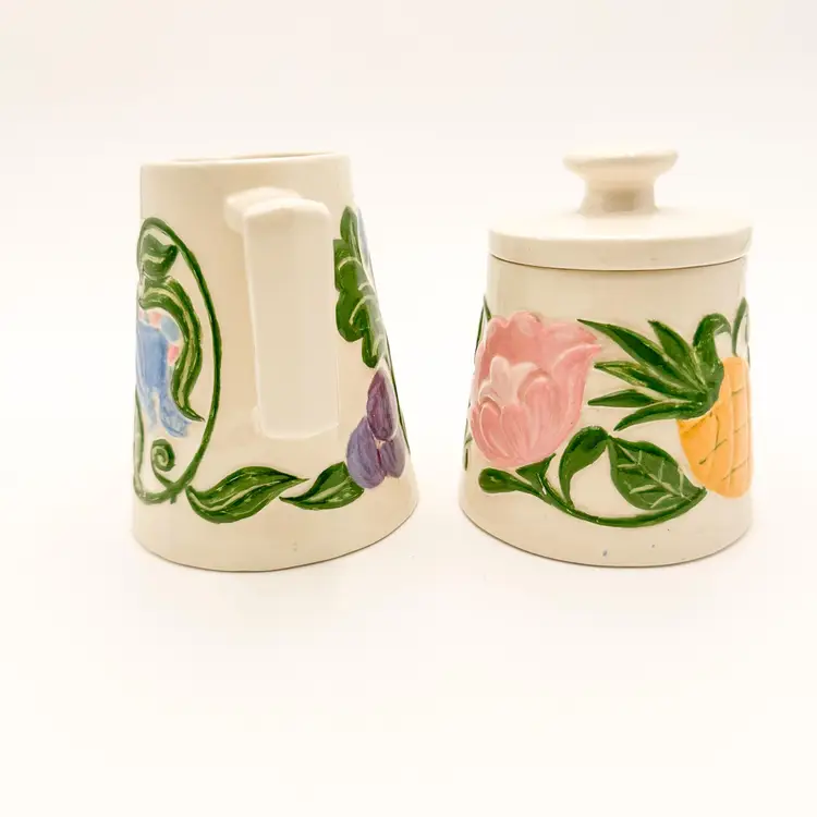Hobbyist set, florals and fruit No chips or cracks Approximately 4.5" H Some crazing