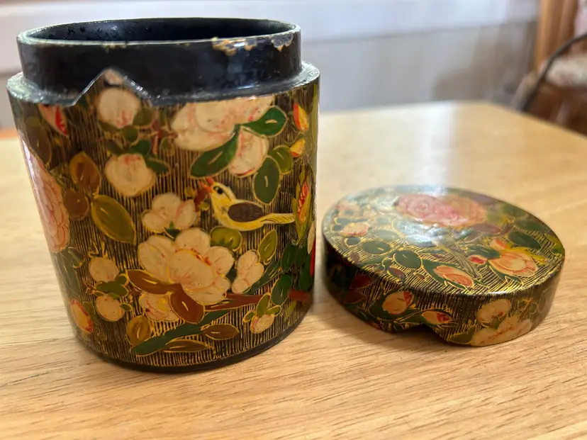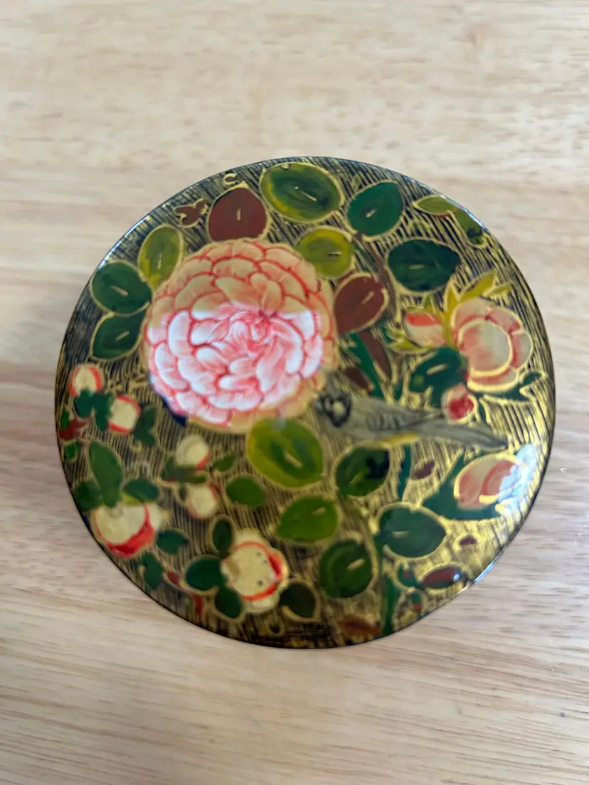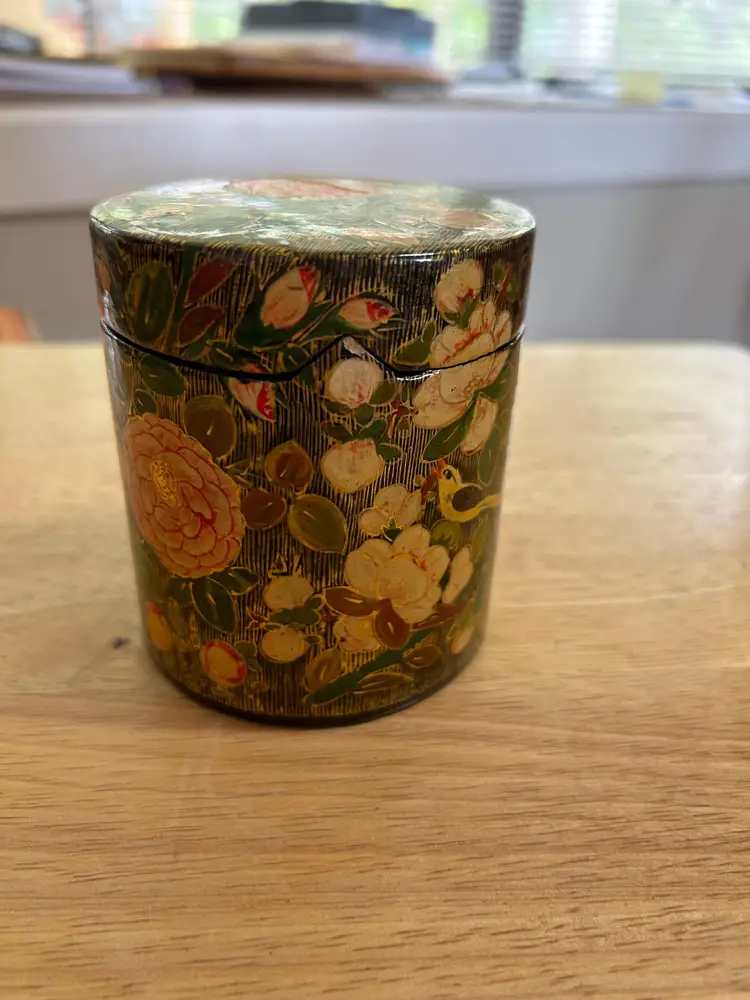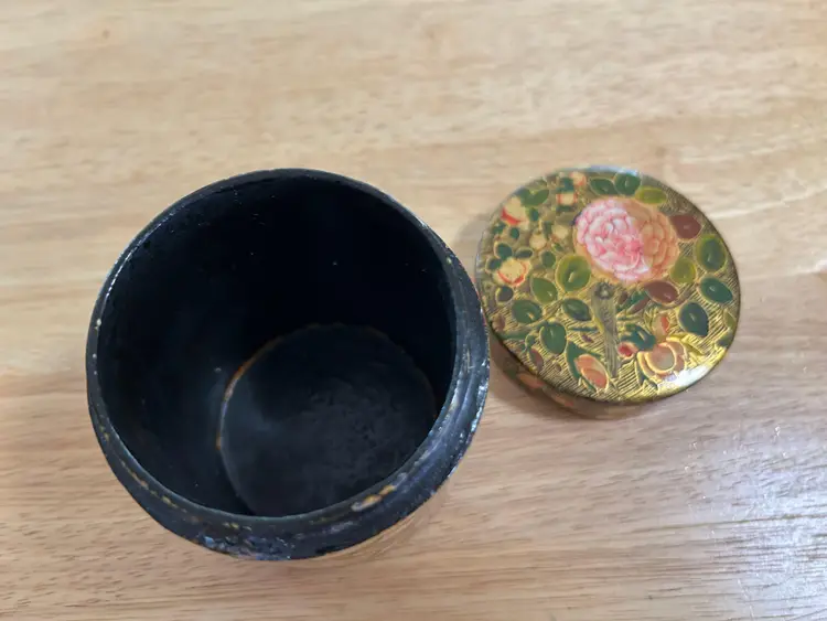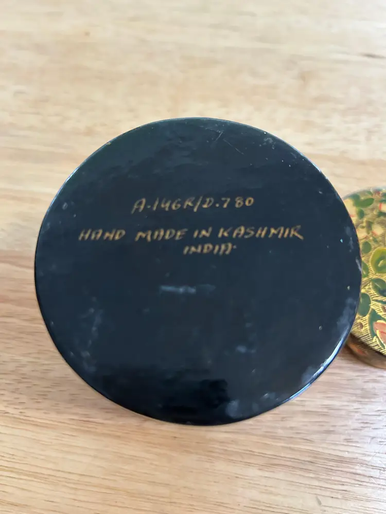 Tea or Trinket Round Box Handmade in Kashmir India Stamp on bottom reads A-146 R/D-780