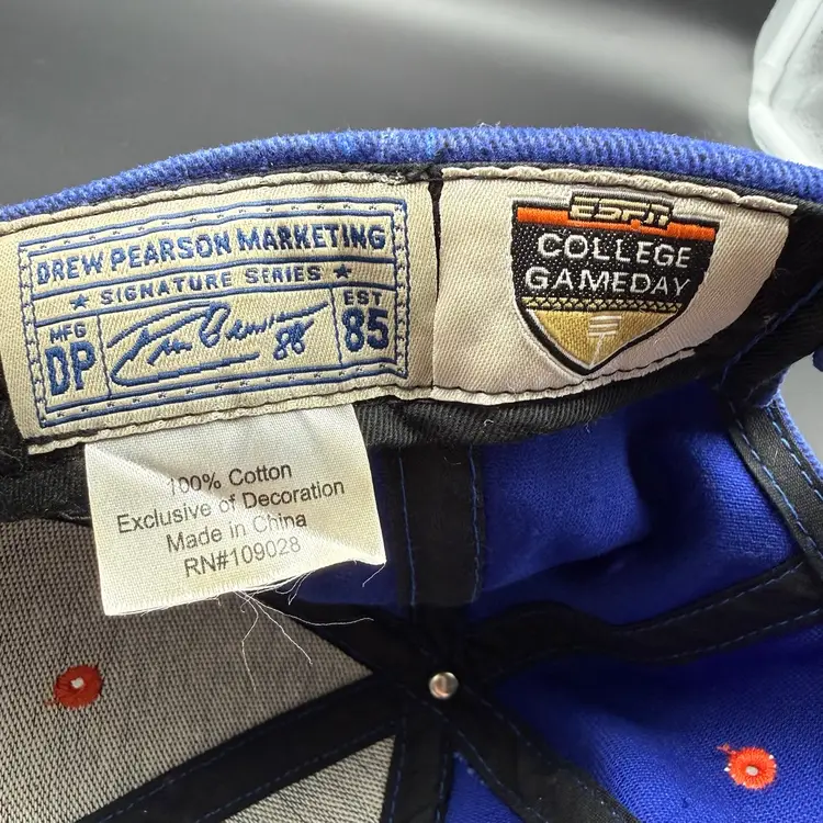 Excellent Condition. Clean; No odors, stains, rips or tears. Slight wear/discoloration on the sweatband. Made in China. 100% Cotton. Hook & Loop Closure.