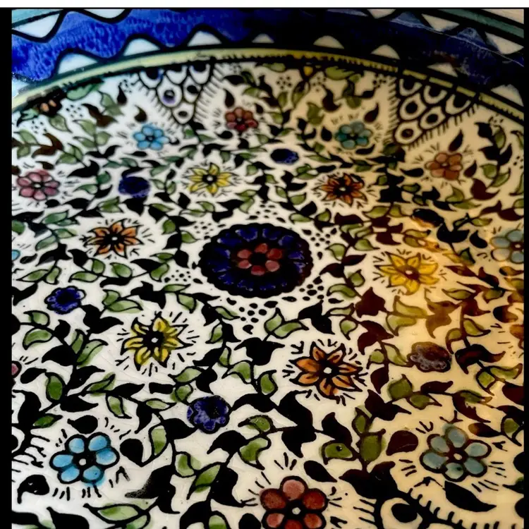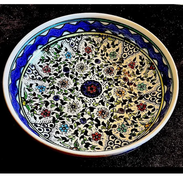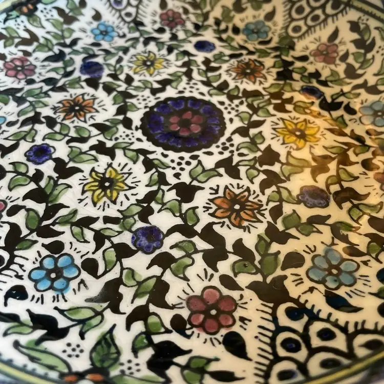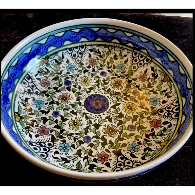 Flower Bowl Armenian Ceramic Jerusalem Colorful Serving Bowl 9” Across, 2” Deep