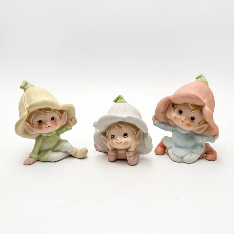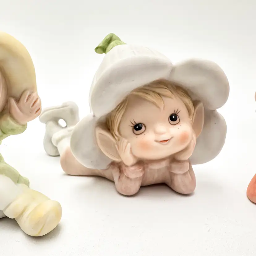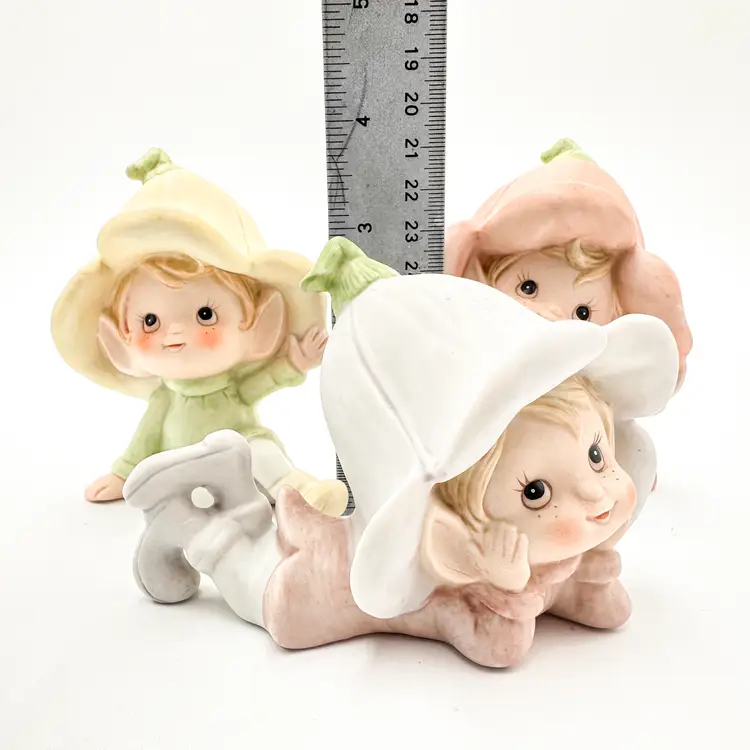 Set of 3 HomeCo ceramic fairy figurines, two have original stickers Matte finish Very good condition, no chips or cracks, some surface wear, see all photos
