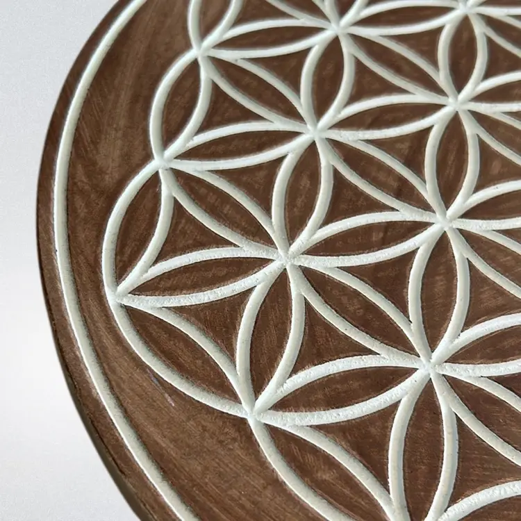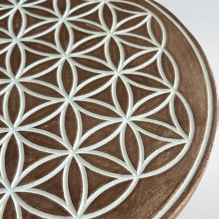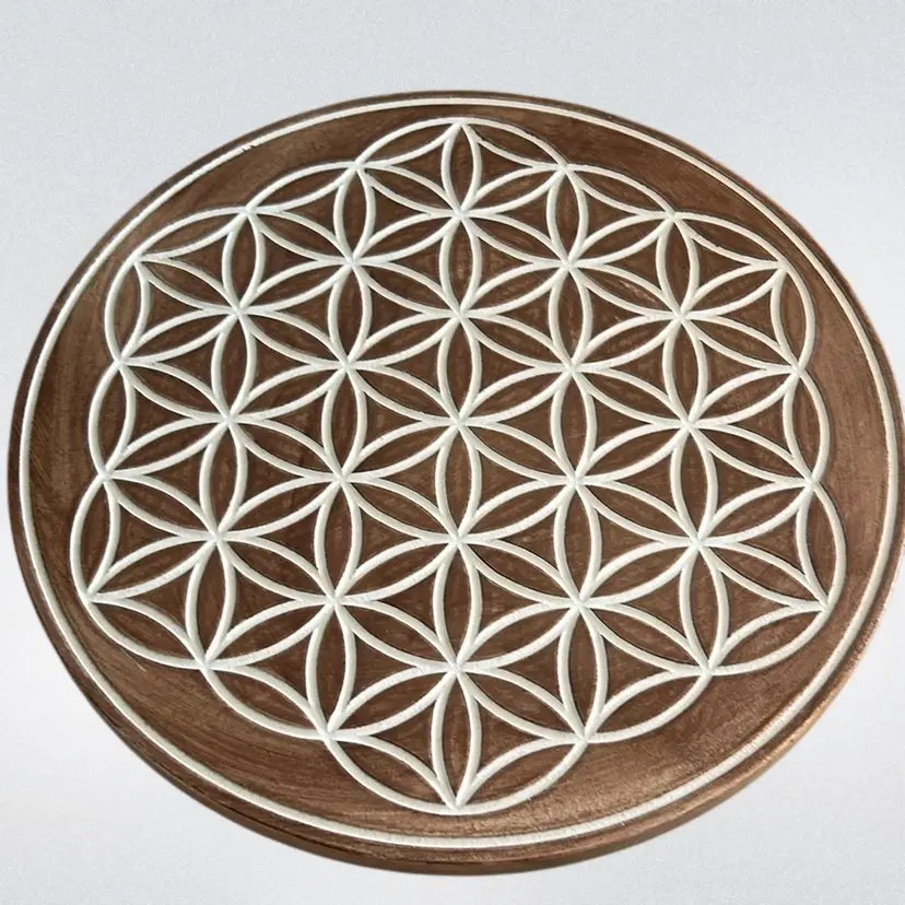 Flower of Life Sacred Geometry Wall Decoration The flower of life has provided what is considered to be a deep, spiritual meaning and forms of enlightenment to those who have studied it’s as a sacred geometry. The flower of life symbol represents important meaning to many thought throughout history the symbol can be found in temples and art throughout cultures around the world. It is in mint condition. However, I believe this is some kind of composite material and the circle of life has been carved in. Still absolutely stunning. It measures approximately 12 inches diameter and is about 3/4 inches deep.(BSA0)