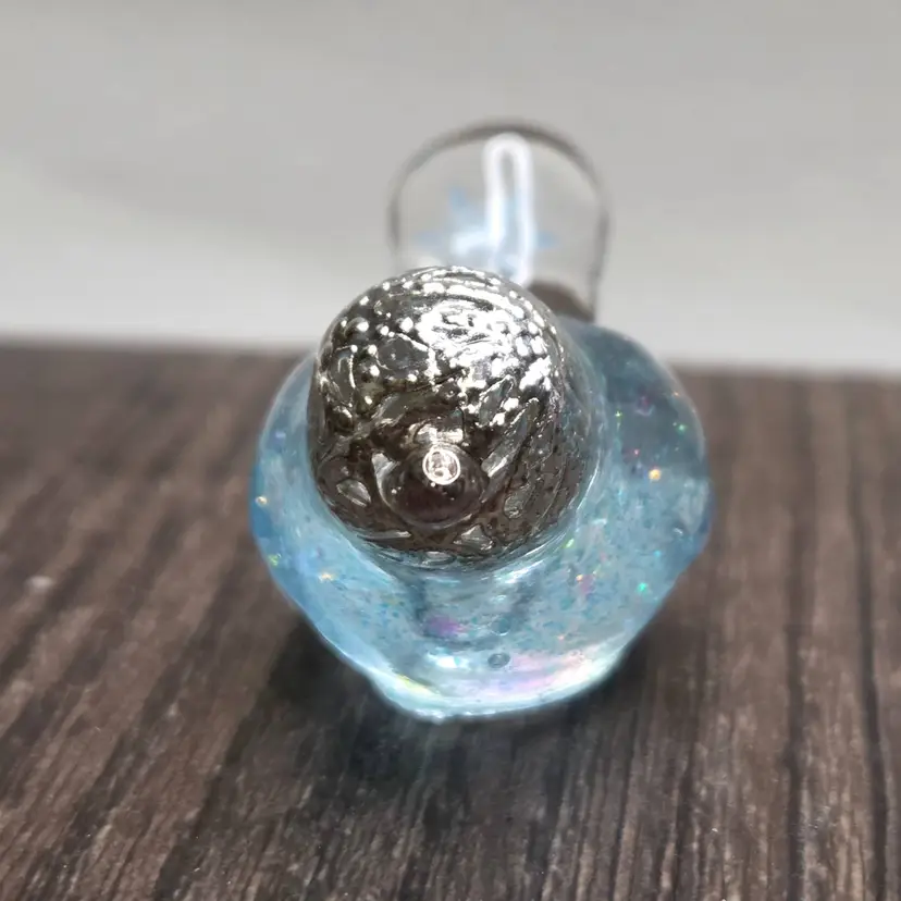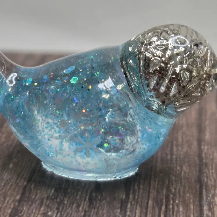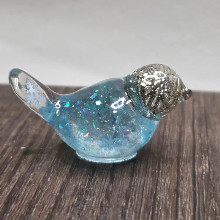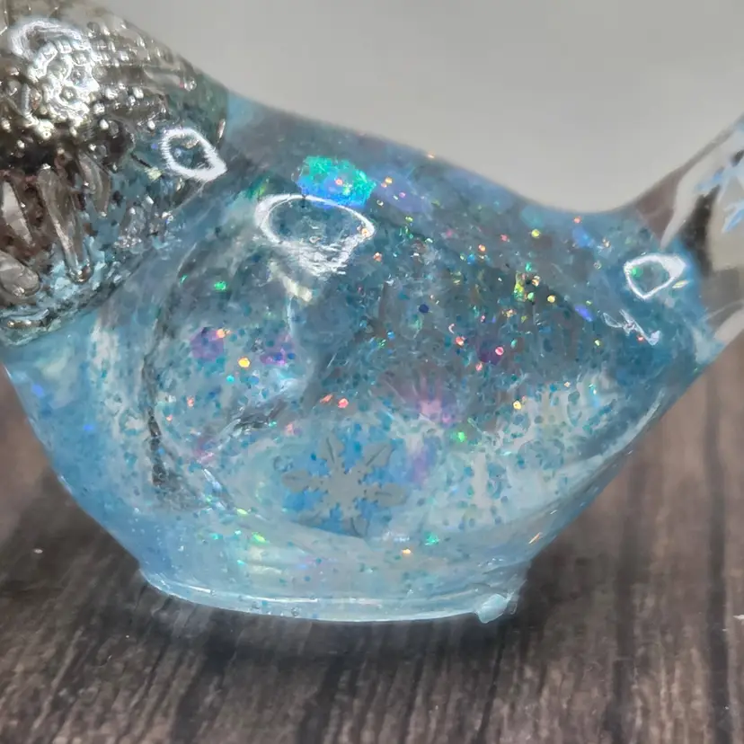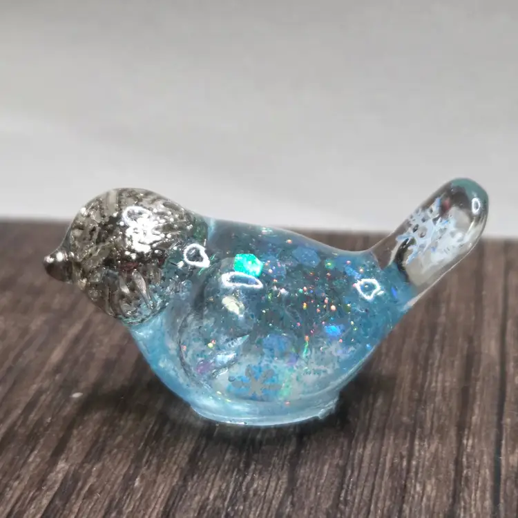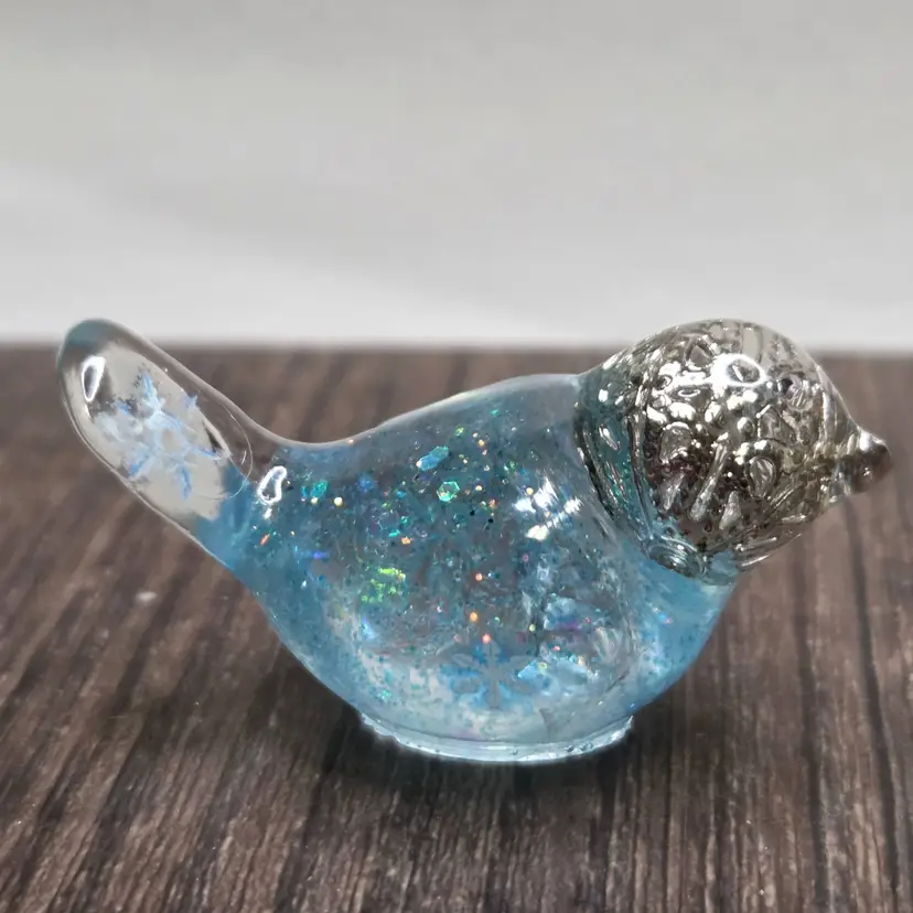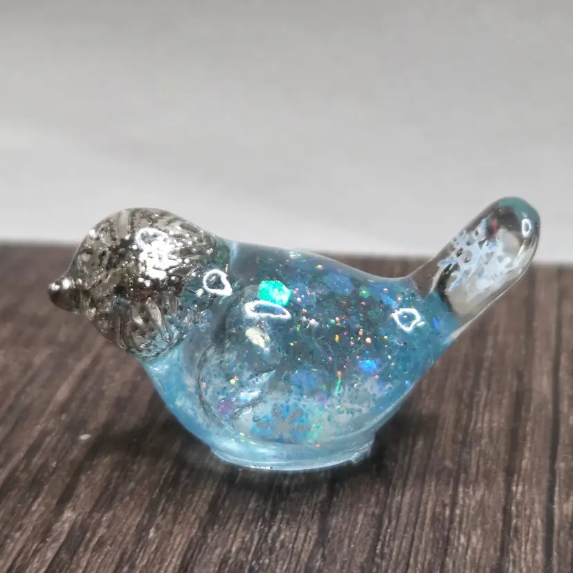 These tiny little birds are handmade from UV resin and bits of baubles and bling from my craft jewelry pile or whatever else I can throw in. No two are alike.